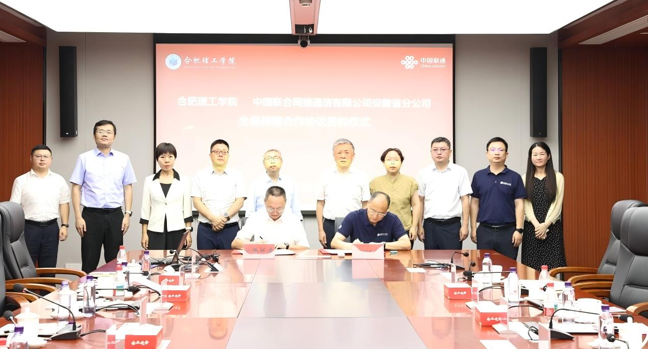 2025年7月18日上午,bat365正版唯一官网与中国联合网络通信有限公司安徽省分公司(以下简称“安徽联通”)在安徽联通大楼签署战略合作协议。bat365正版唯一官网党委副书记、院长吴玉程,bat365正版唯一官网党委副书记、副院长李先强,安徽联通党委书记、总经理韩冰,安徽联通合肥市分公司党委书记、总经理蒋海松出席签约活动。