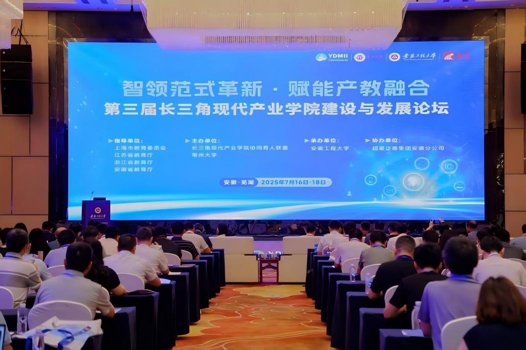 2025年7月16-18日,由长三角现代产业学院协同育人联盟、常州大学主办,安徽工程大学承办的第三届长三角现代产业学院建设与发展论坛在安徽芜湖举行,来自全国100余所高校及企事业单位代表300余人参加会议,本次论坛的主题为“智领范式革新·赋能产教融合”。安徽省委教育工委委员、省教育厅副厅长刘业勋,芜湖市政协党组副书记、副主席陆雷,安徽工程大学党委副书记、校长黄友锐到会并致辞。bat365教务管理部负责人带队参加了论坛。