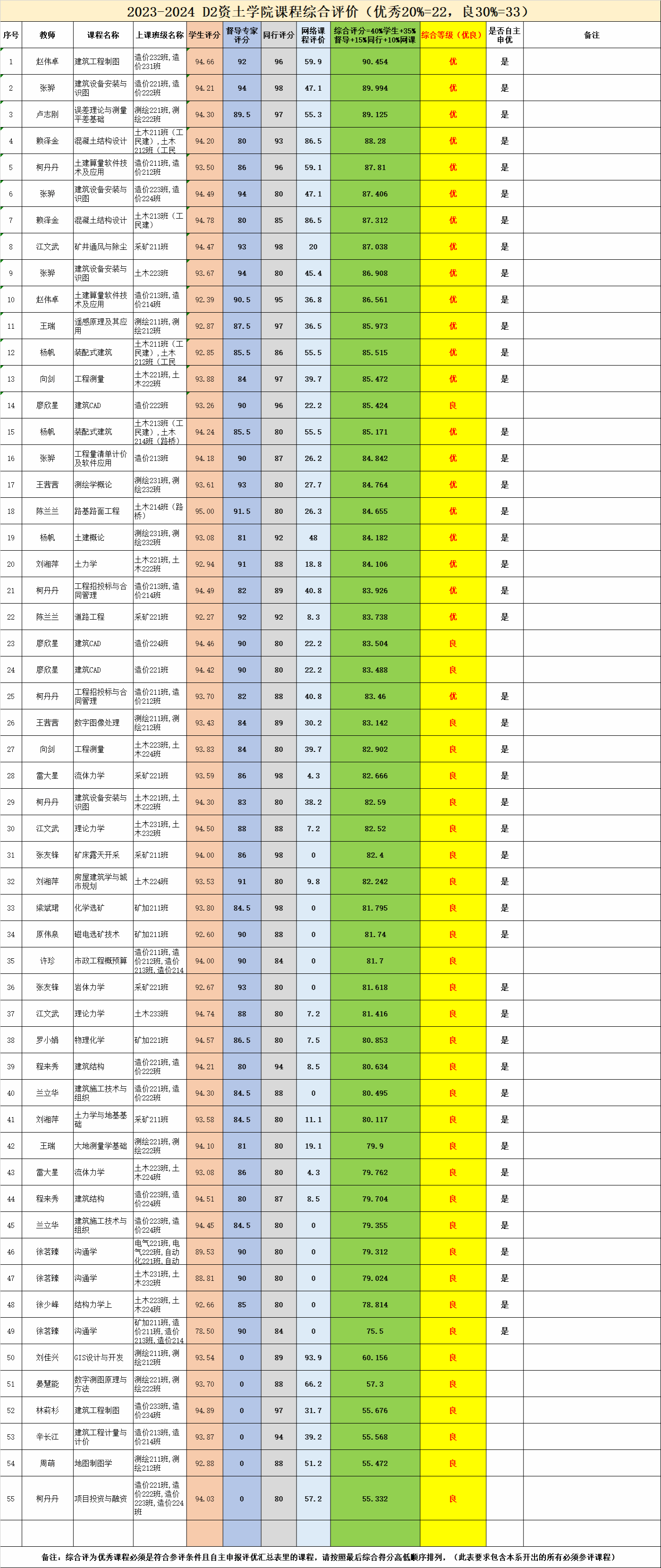 资土学院2023-2024第二学期课程教学效果评价优良课程公示