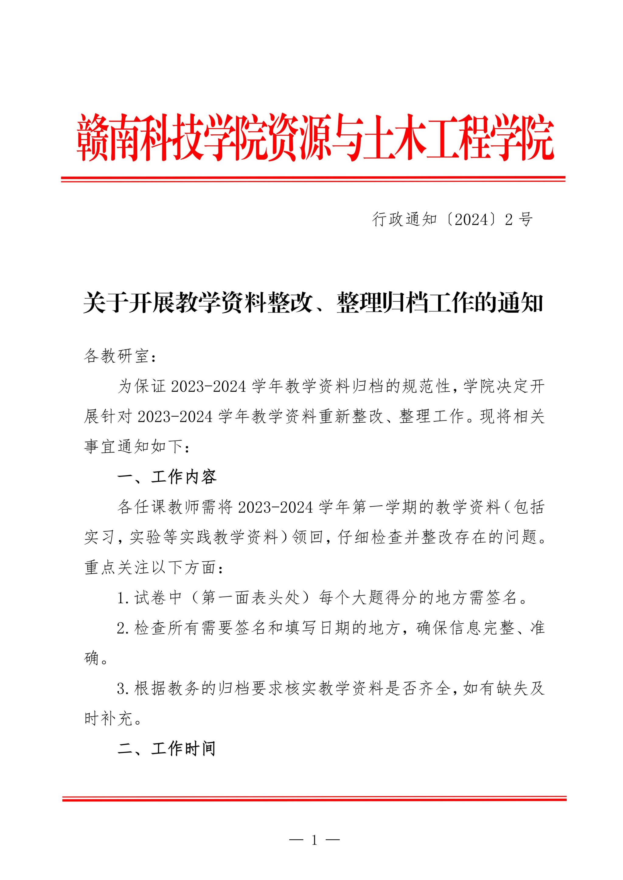 关于开展教学资料整改、整理归档工作的通知