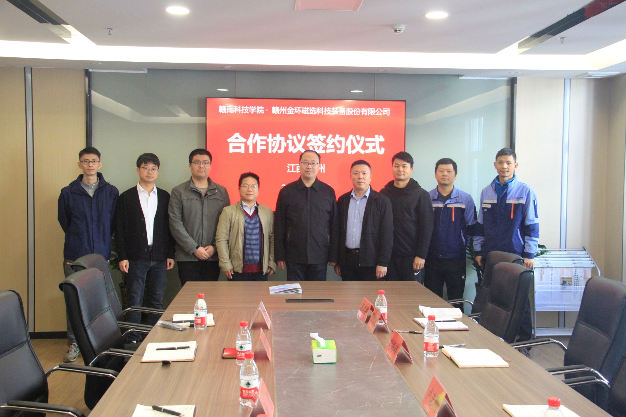 本网讯:11月17日,bat365建设工程系主任卢志刚、科研办主任胡海祥一行赴赣州金环磁选科技装备股份有限公司(下称“金环磁选公司”)考察调研,金环磁选公司副总经理任祥君热情接待了卢志刚一行,双方在公司会议室举行了校企产教融合合作协议签约仪式。