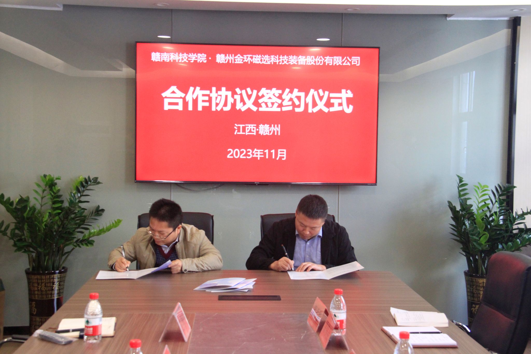 随后,卢志刚与任祥君代表双方签订了校企产教融合合作协议和“先进钨资源加工现代产业学院”建设合作协议书;签约仪式后,卢志刚一行参观了金环磁选企业展厅和实验中心。