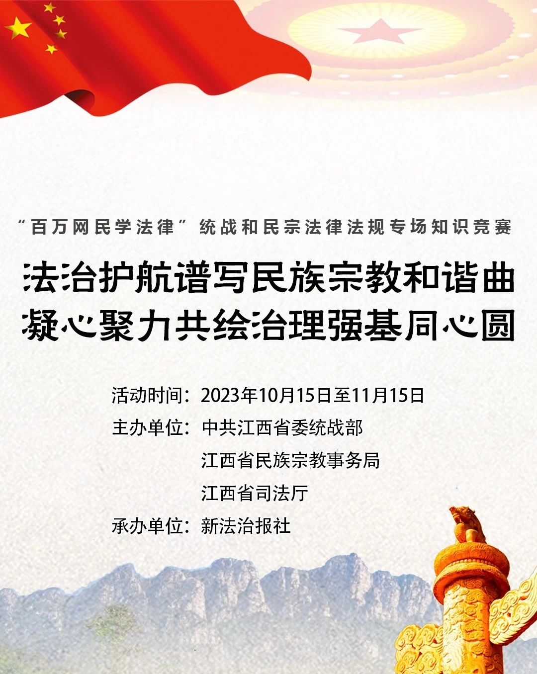 本次“百万网民学法律”统战和民宗法律法规专场知识竞赛活动圆满结束,不仅让同学们认识到了法治的复杂性和多样性,加深对国家法律体系的理解,也让同学们明白了法治社会需要各种法律制度来维护不同层面的权益,促进社会的和谐与稳定。
