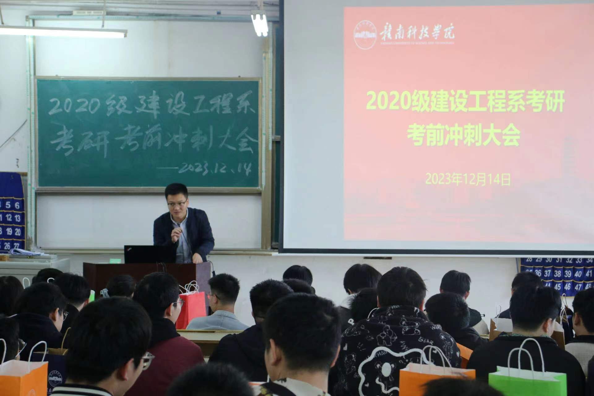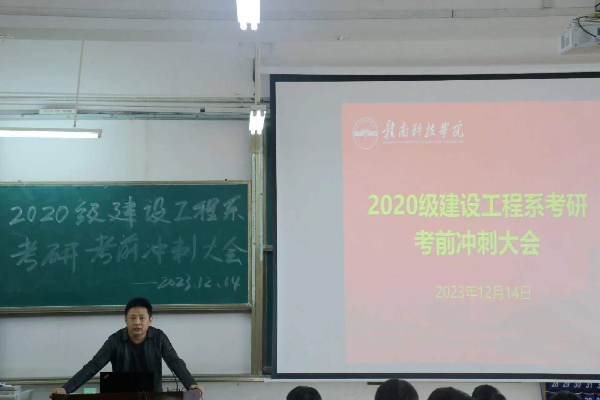 本网讯:2020级国家硕士研究生考试开考在即,为鼓舞考研士气,缓解备考压力,12月14日下午,建设工程系于Z1D1召开2020级考研冲刺大会。bat365中文官方网站党委书记刘俊峰、系领导班子卢志刚、代靖怡、涂黎明,辅导员徐新木、刘波及考研学子们参加本次大会。