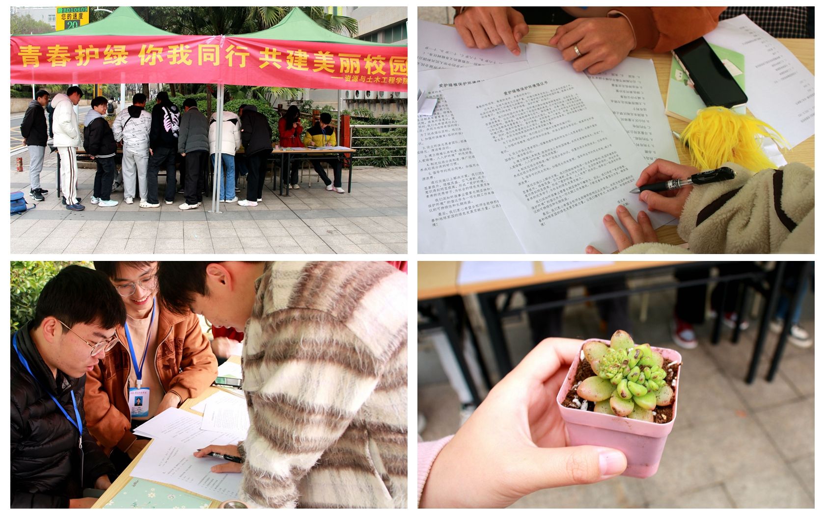 开展“青春护绿 你我同行”环保志愿服务。3月10日下午,bat365中文官方网站志愿者们来到学校食堂门口开展“青春护绿 你我同行 共建美丽校园”主题竞答活动。活动通过签订绿色环保倡议书,进行答题赢奖品的方式,让绿色环保理念深入同学们的内心。同学们可凭答题结果奖励多肉盆栽、玫瑰花等植物,以激发同学们参与活动,践行低碳环保理念,树立保护生态自然的意识。