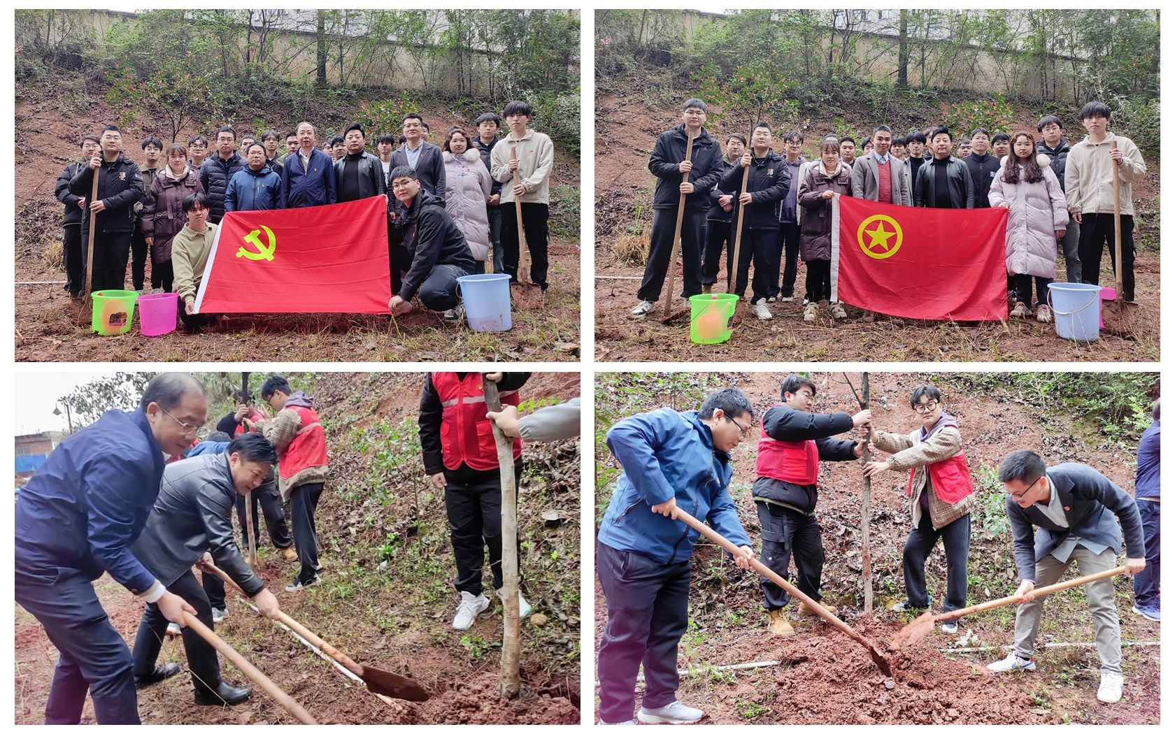 正值植树节,3月12日上午,bat365中文官方网站师生党员团员开展植树活动。活动开始,学院师生党员分工明确,共分成八个小组,小组成员分配好铁锹、水桶等植树工具,通过浇水、堆土等小组合作完成树苗的栽种。此次活动不仅提高了同学们的环保意识,同时为校园增加一份绿色贡献一份力量。