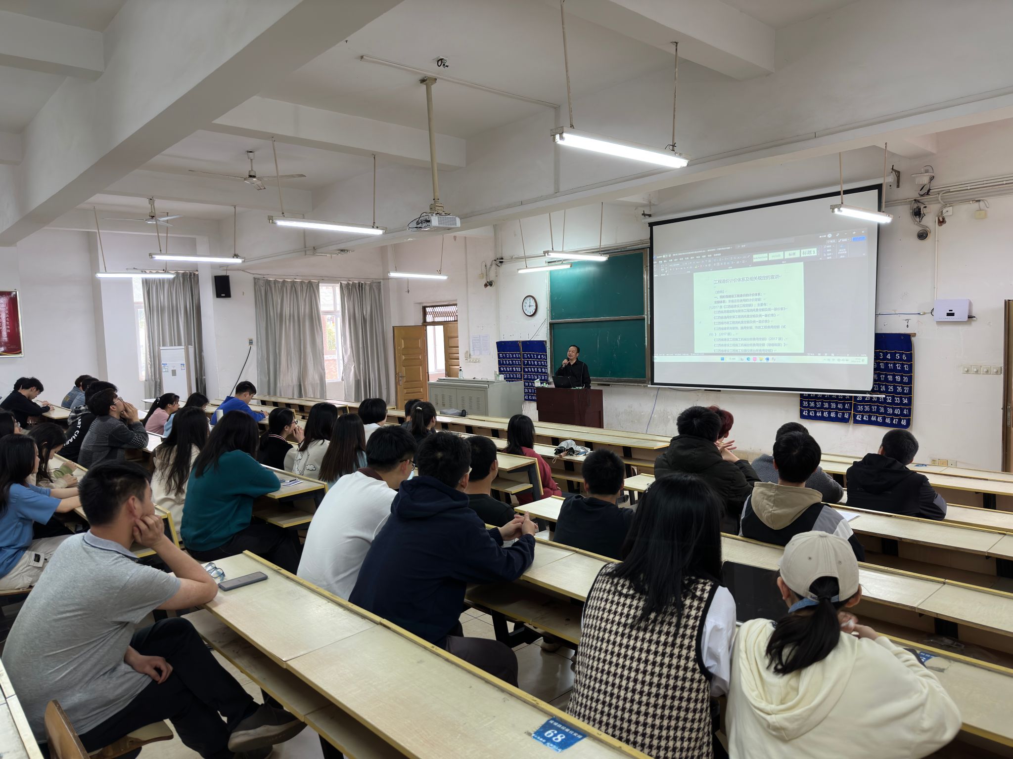 本网讯:为进一步加深工程造价专业学生对计价体系及相关考试条件的了解,建设工程系于3月11日在主教Z1D1举办工程造价计价专题宣讲会,会议邀请赣州市工程质量管理服务中心造价科科长、高级工程师钟效琼进行宣讲,我系造价专业学生参加本次会议,会议由建工系副主任代靖怡主持。