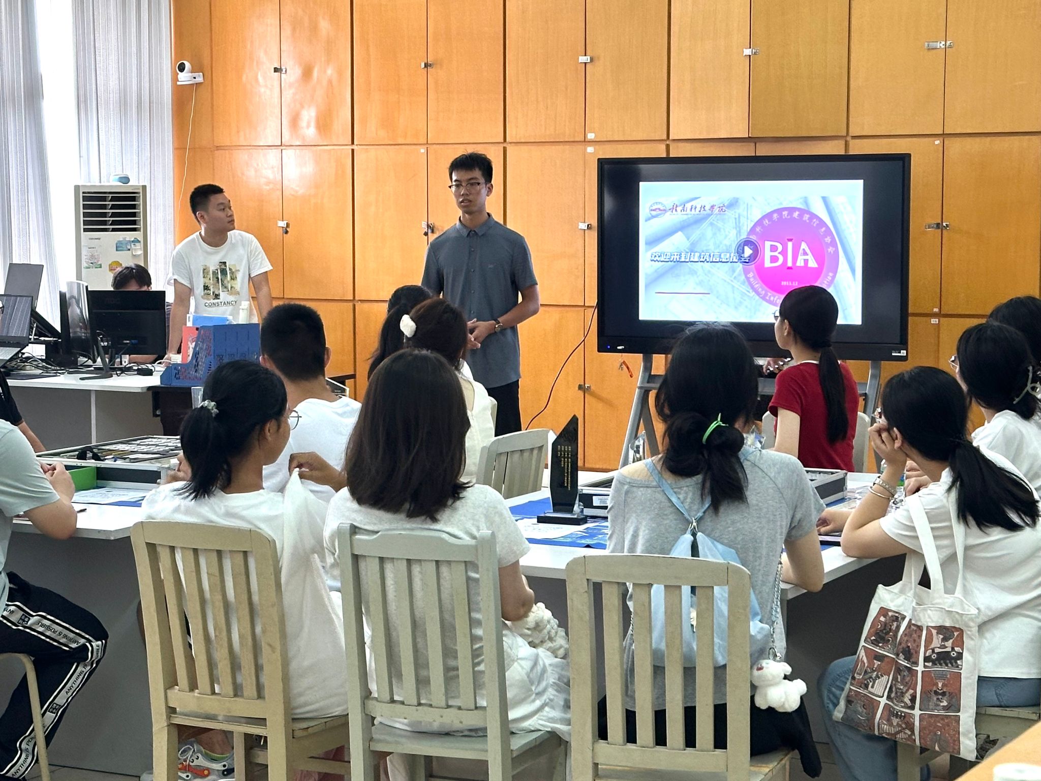 在活动过程中,S601主讲人魏名媛向新生们介绍了工程算量对量实验室,向新生们介绍了工程造价专业的就业前景,学习方向以及未来可以参与的学科竞赛。S602主讲人李强向新生们介绍了工程项目管理、沙盘模拟实验室、协会各个部门及其工作职能和一些专业性的学科竞赛和协会所获得的奖项,此外,学长们还解答了新生们提出的问题,让新生们更了解自己的专业和BIA建筑信息协会。S607主讲人邹琳琳向新生们介绍了专业软件,带领新同学提前了解专业软件。重点实验室主讲人刘彩菱向大家介绍了重点实验室的组成和功能。
