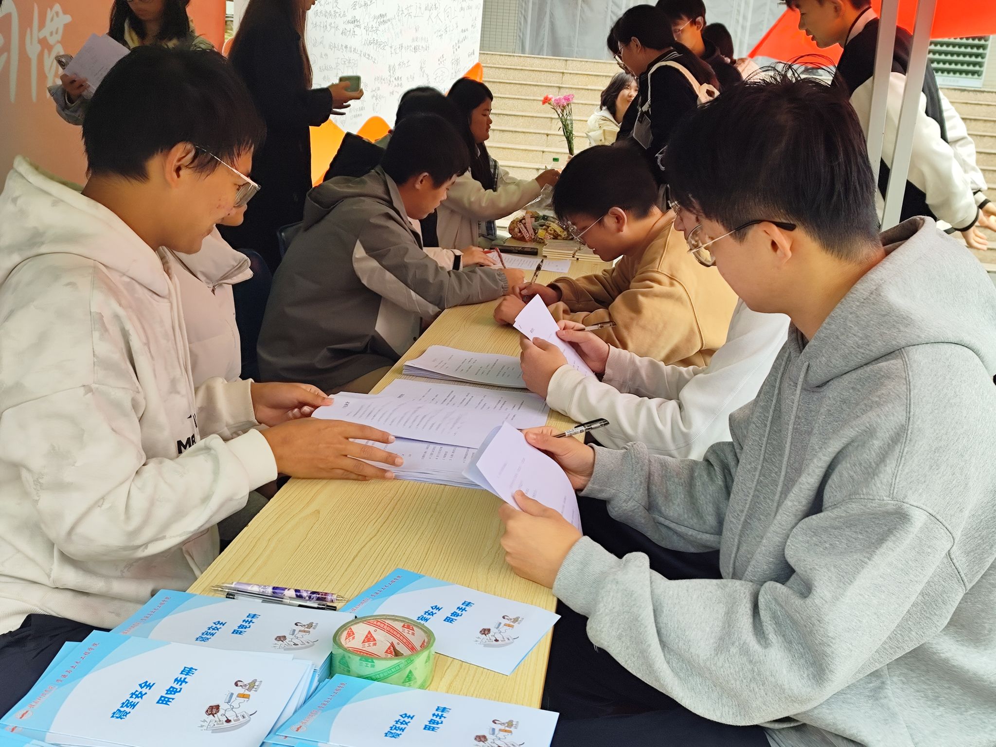 活动现场,工作人员向同学们分发寝室用电安全手册,宣传寝室用电安全知识。同学们随机抽取一组题目进行作答,答对相应题数的同学有机会得到公仔、钥匙扣、笔记本、黑字笔等奖品。前五十名来答题的同学附赠康乃馨一支。活动期间,同学们踊跃参与答题,气氛活跃,在bat365中文官方网站宿管部和校友部的共同努力下,本次活动取得圆满成功。