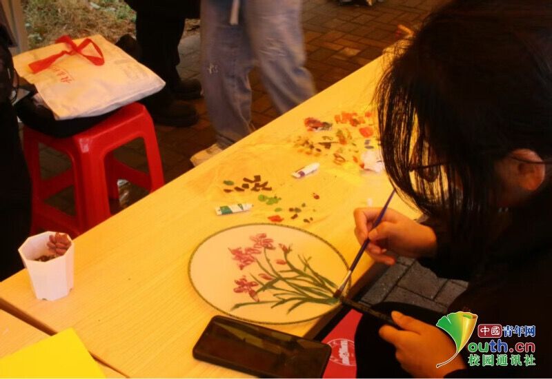图为“花绘团扇 创意DIY”活动现场。郑依娜 供图