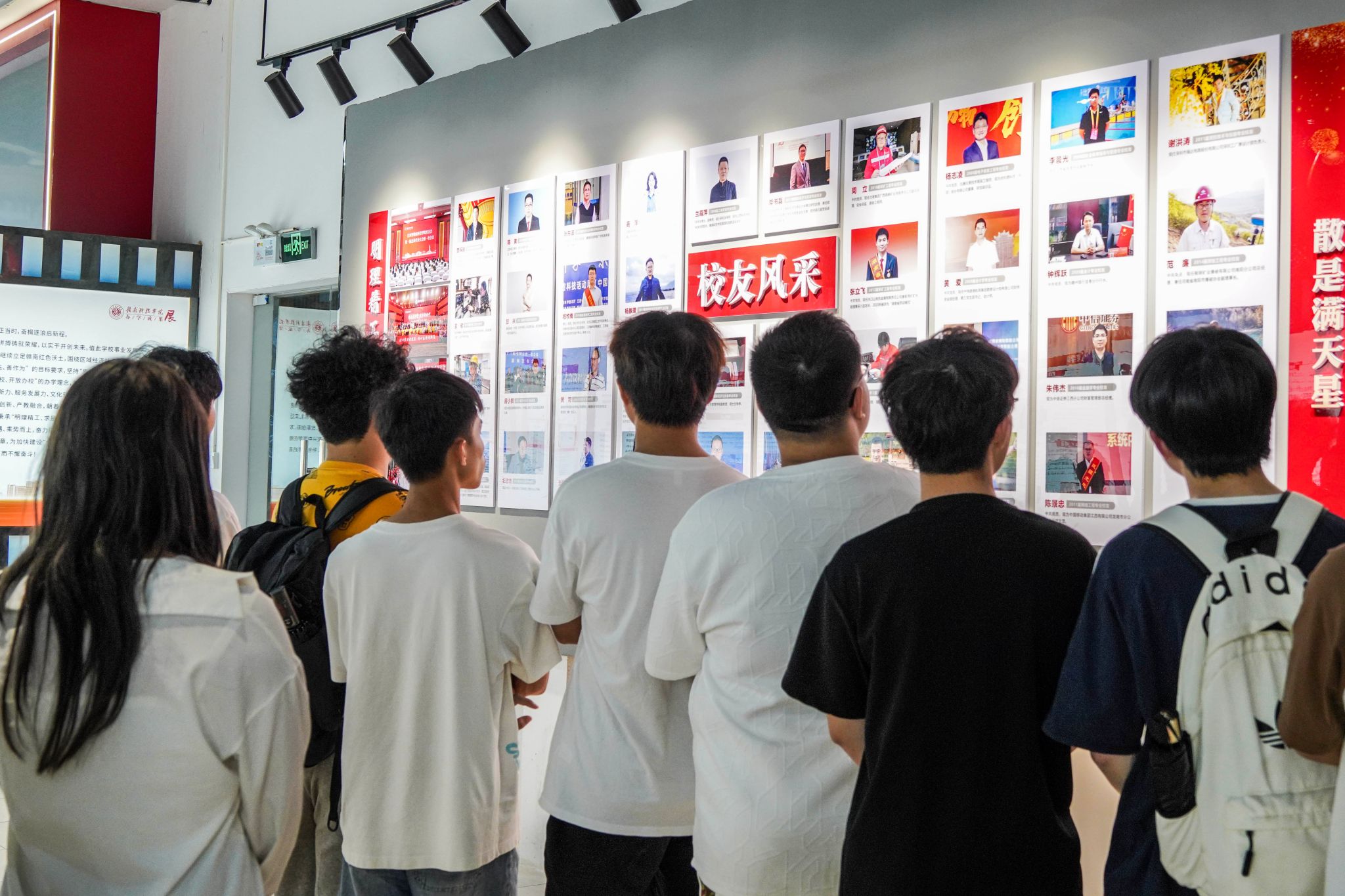 “我们的足迹”办学成果展是新生入学教育和学校思想政治教育的重要场所,主要展示了转设以来学校在党建思政、人才培养、师资建设、科学研究、社会服务、合作交流等方面的办学成果和办学特色。在讲解员的解说下,参展师生目不暇接,通过图文展板、实物模型、数据图表等近距离观看了学科竞赛作品、校园文化活动、人才队伍建设、科研创新项目成果、校企联合研发设备等,并通过互动问答、观看视频等形式,沉浸式感受学校育人实践成效。