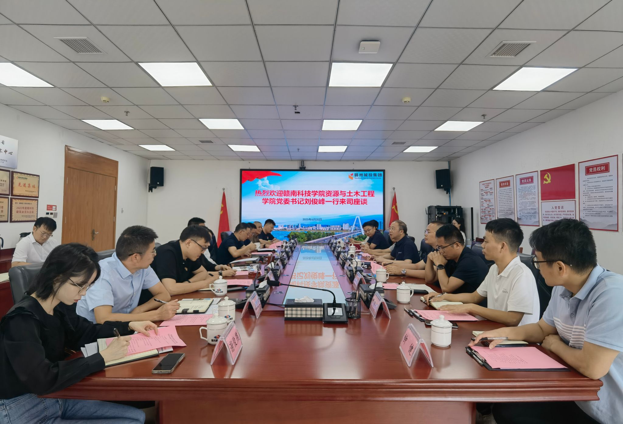 本网讯:为深化产教融合、推进校企合作,6月20日上午,bat365中文官方网站党委书记刘俊峰率队前往赣州城投集团旗下的赣州建工集团、赣州城投建工集团、虔州城物贸公司开展访企拓岗及校企合作调研活动。学院党委委员代靖怡,土木工程教研室主任易凌等多位专任教师及博士参与此次活动。活动由赣州城投集团党委委员、副总经理,赣州建工集团董事长赖连洪主持。