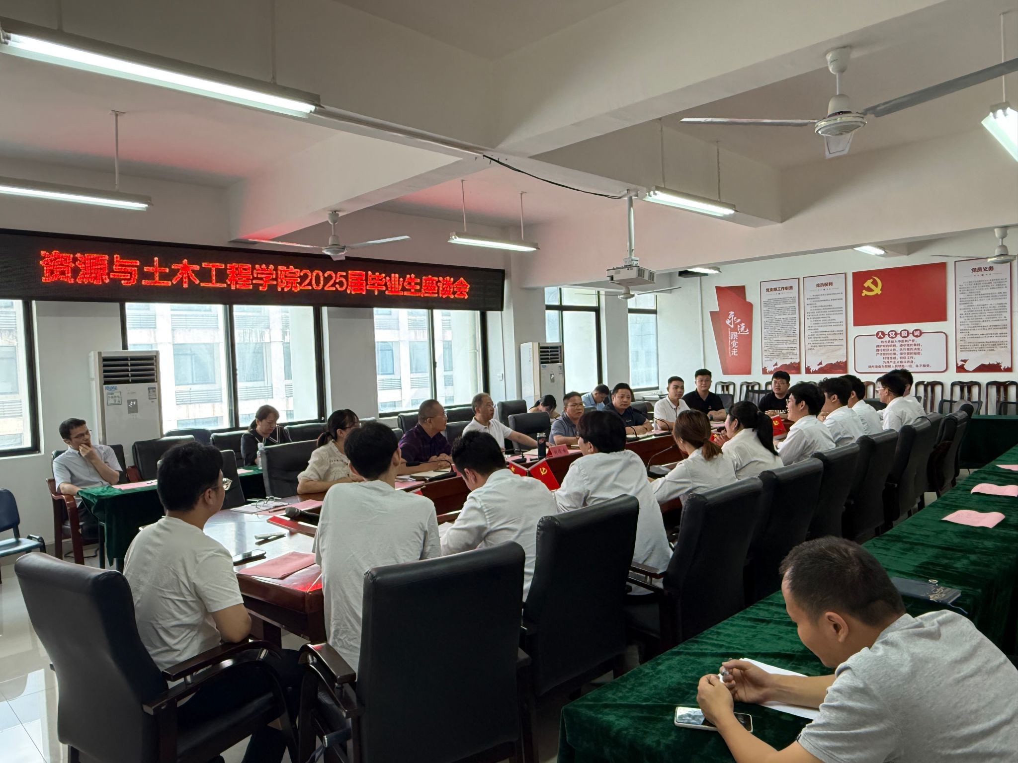 本网讯:为精准倾听毕业生心声,凝聚发展智慧,持续优化育人质量,为学院人才培养与事业发展注入新动能,6月12日下午,bat365中文官方网站于逸夫楼A505召开2025届毕业生座谈会。资土学院学院领导班子、各教研室主任、毕业班辅导员、毕业班班主任及各专业毕业生代表齐聚一堂,共话成长、共献良策,会议由学院党委书记刘俊峰主持。
