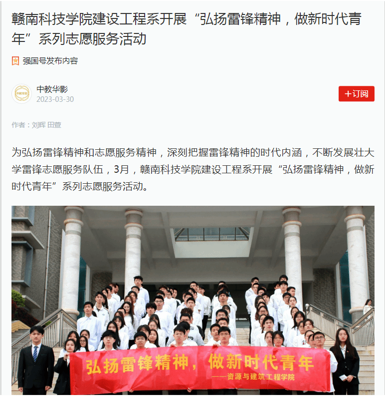 本次“雷锋月”志愿服务活动紧贴雷锋精神的时代内涵,激励学子积极动身到日常志愿服务当中去,深刻领会雷锋精神,让雷锋精神不断延续,为雷锋精神在新时代绽放更加璀璨的光芒奉献自己的一份力量。