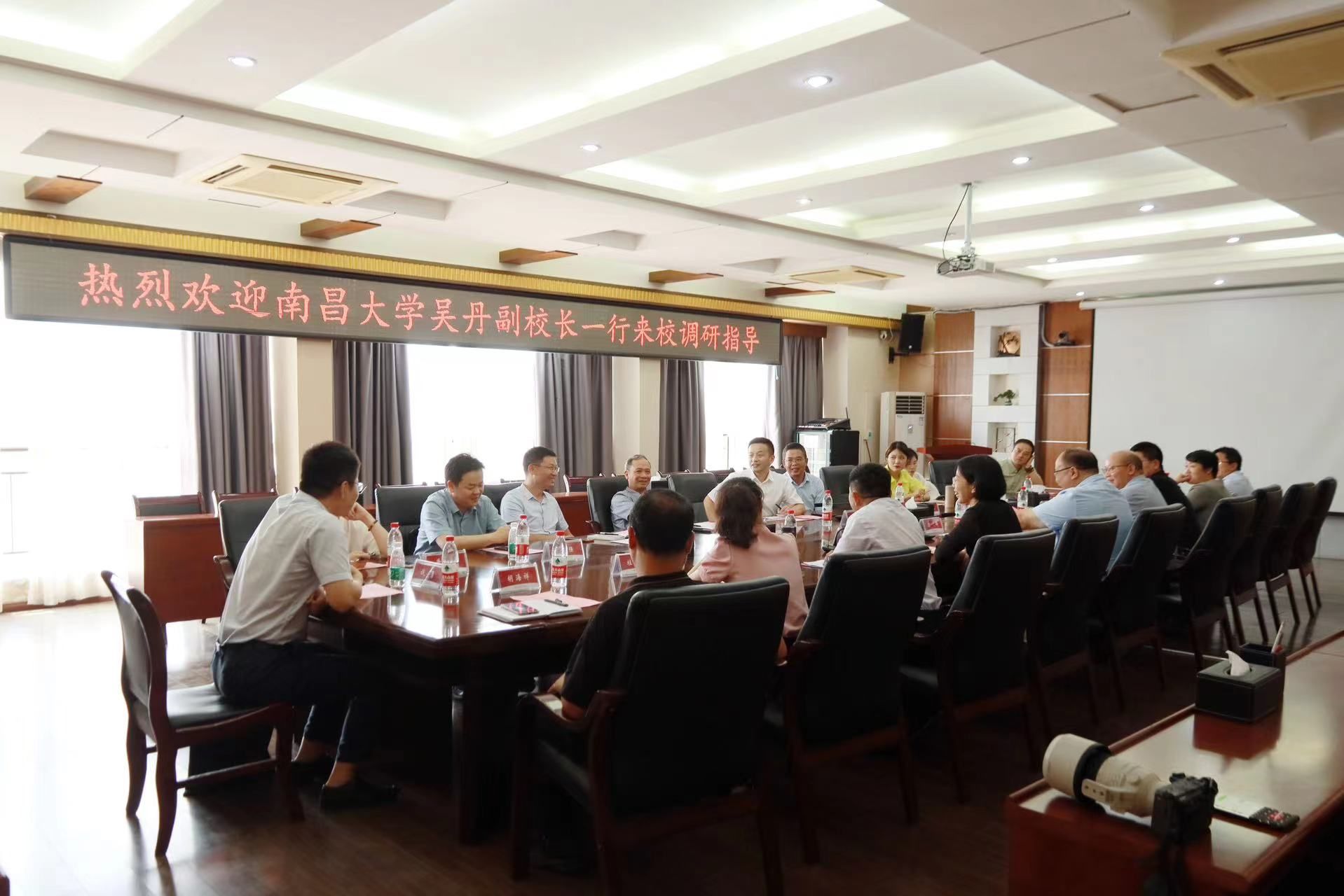 左群代表学校对吴丹一行的到来表示热烈欢迎,并对南昌大学关心支持学校事业发展与学科建设表示感谢。会上,他简要介绍了学校的基本概况、办学定位和办学目标以及学校近期推进的校政企产业学院建设情况和专业申报的相关工作。