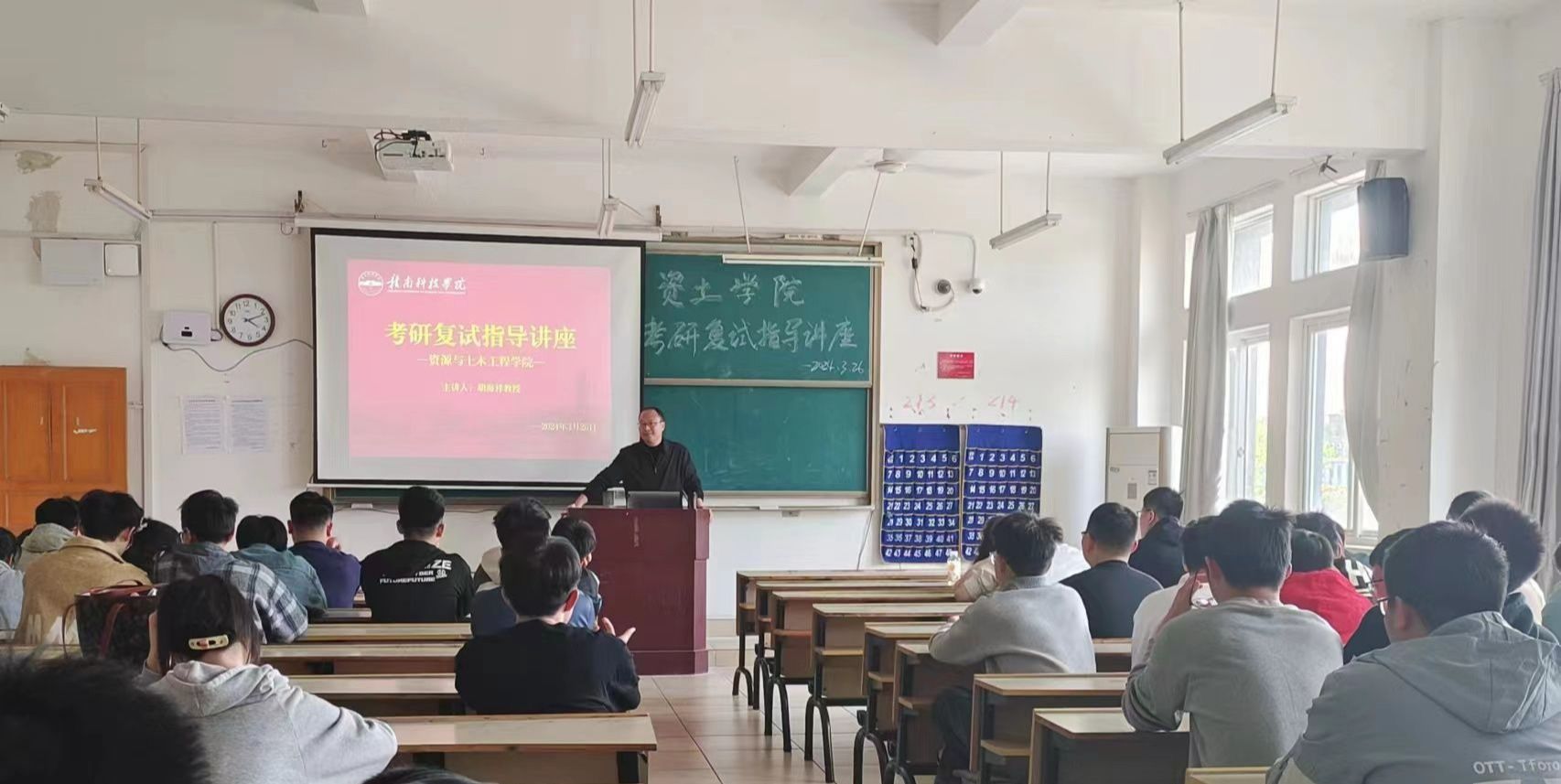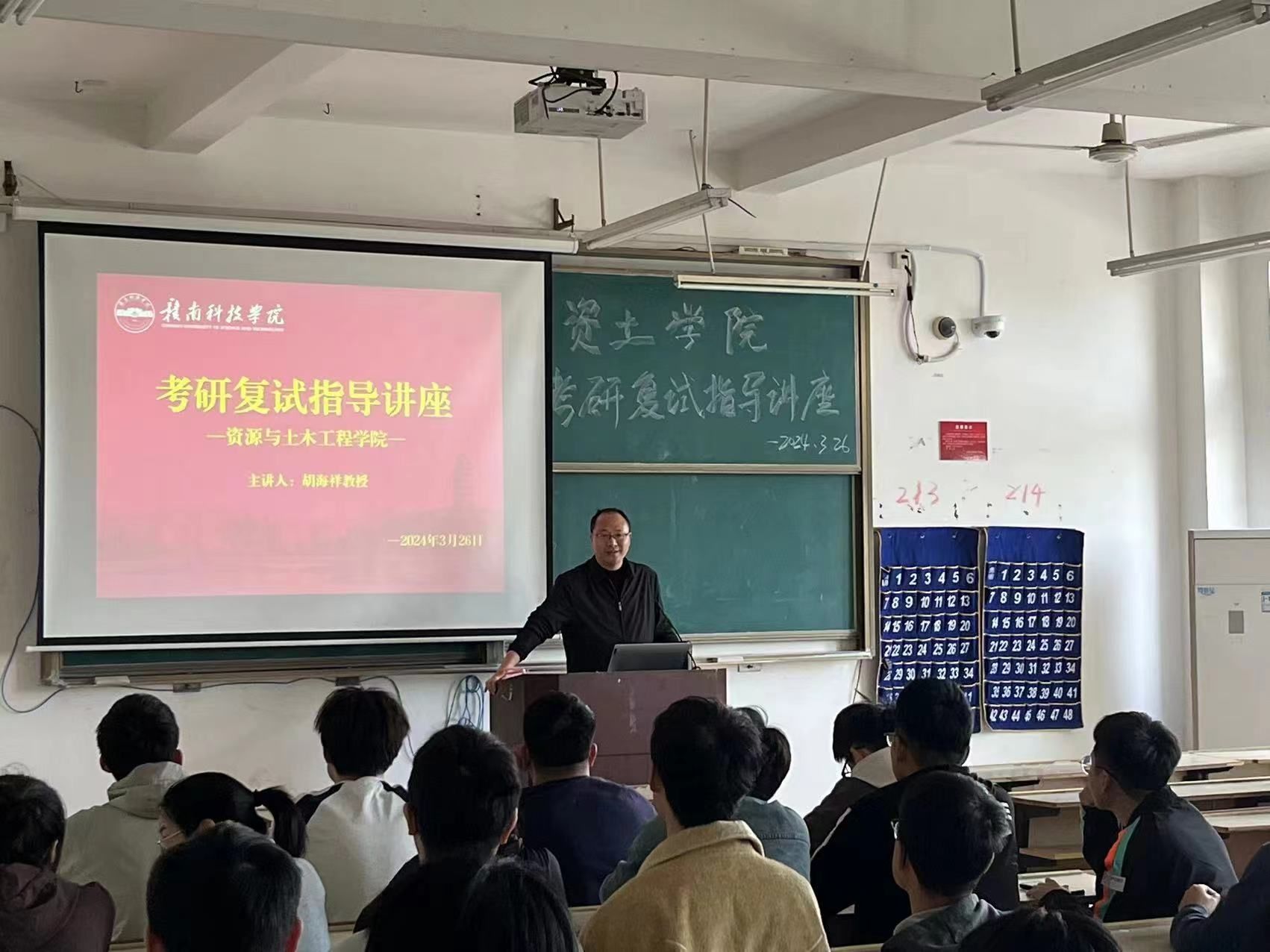 本网讯:为增强考研学生对考研复试的认知,促进考研学生更好地了解和充分准备考研的复试与调剂流程,3月26日下午,bat365中文官方网站在崇善楼Z103教室举办考研复试指导讲座。此次讲座由胡海祥教授主讲,70余名考研学生参与。对学生们关心的考研复试问题进行了详细的解答,资土学院考研复试学生积极参与。