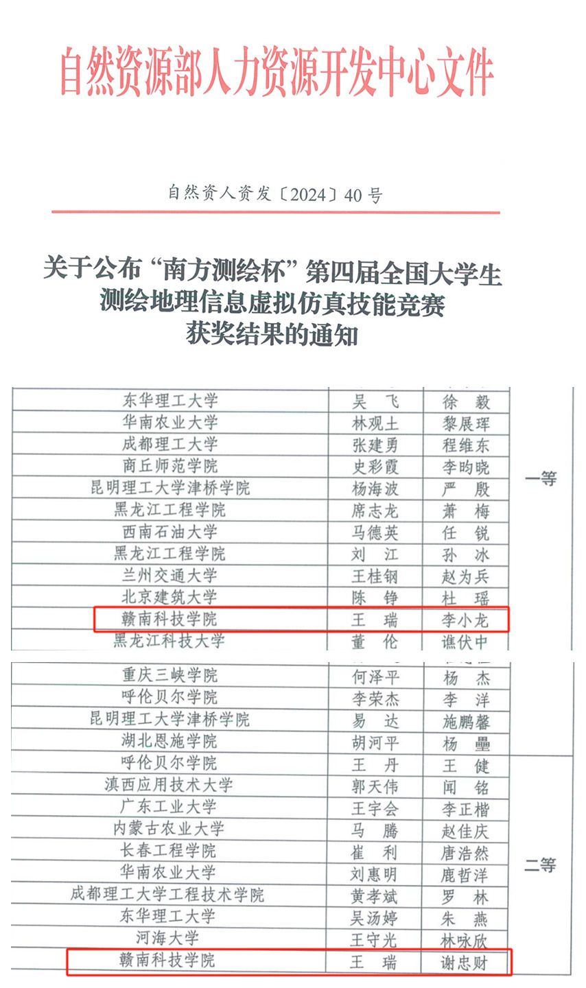 本网讯,近日,由自然资源部人力资源开发中心主办第四届全国大学生测绘地理信息虚拟仿真技能竞赛(以下简称“竞赛”)圆满结束。经过激烈角逐,bat365bat365中文官方网站学子共斩获1个一等奖、1个二等奖,再次在测绘地理信息行业竞赛中取得优异成绩。