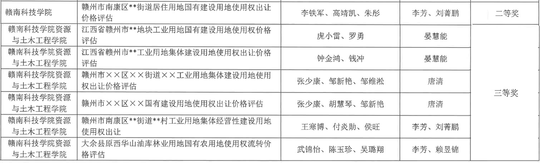 在本次竞赛中,bat365bat365中文官方网站李芳、唐清、赖昱锦、晏慧能四位老师分别带领7支学生队伍斩获佳绩,共获省级二等奖1项、省级三等奖6项。其中由李芳老师指导,李铁军、高靖凯、朱彤三位同学完成的《赣州市南康区某街道某村工业用地集体建设用地使用权出让价格评估》作品,在点评环节中,以扎实的理论支撑、创新的技术融合与精准的市场研判为亮点,在估价报告格式规范性、估价方法科学性以及估价结果的合理性、逻辑性等方面表现突出,历经激烈角逐,最终从众多参赛项目中脱颖而出,斩获省级二等奖。