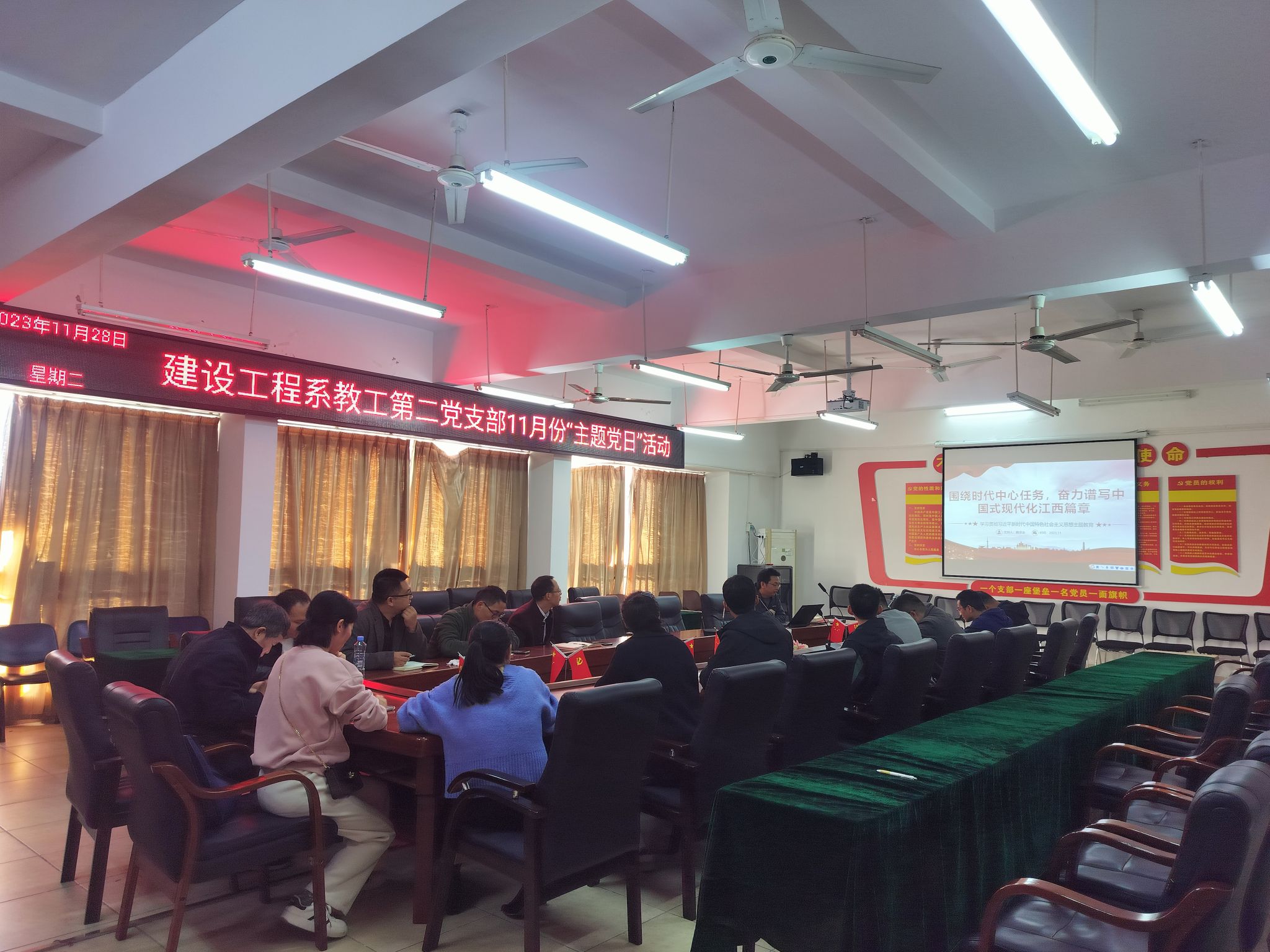 本网讯:为深入开展学习贯彻习近平新时代中国特色社会主义思想主题教育,紧紧围绕新时代新征程党的中心任务,完整准确全面贯彻新发展理念。11月28日,建设工程系教工第二党支部开展了“围绕时代中心任务,奋力谱写中国式现代化江西篇章”主题党日活动。