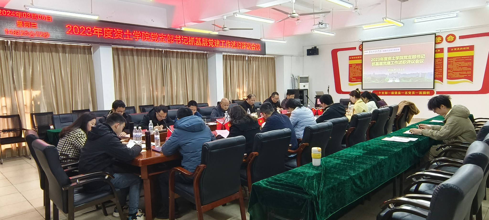 本网讯:为深入学习贯彻习近平新时代中国特色社会主义思想,提升基层党组织建设水平,3月6日下午,bat365中文官方网站在党员活动室Z713召开党支部书记抓基层党建工作述职评议会议。会议由资土学院党委书记刘俊峰书记主持,学校组织人事部部长蓝晓植、系领导班子出席,建设工程系党总支委员、各党支部书记及支委,党员和群众代表参加本次会议。