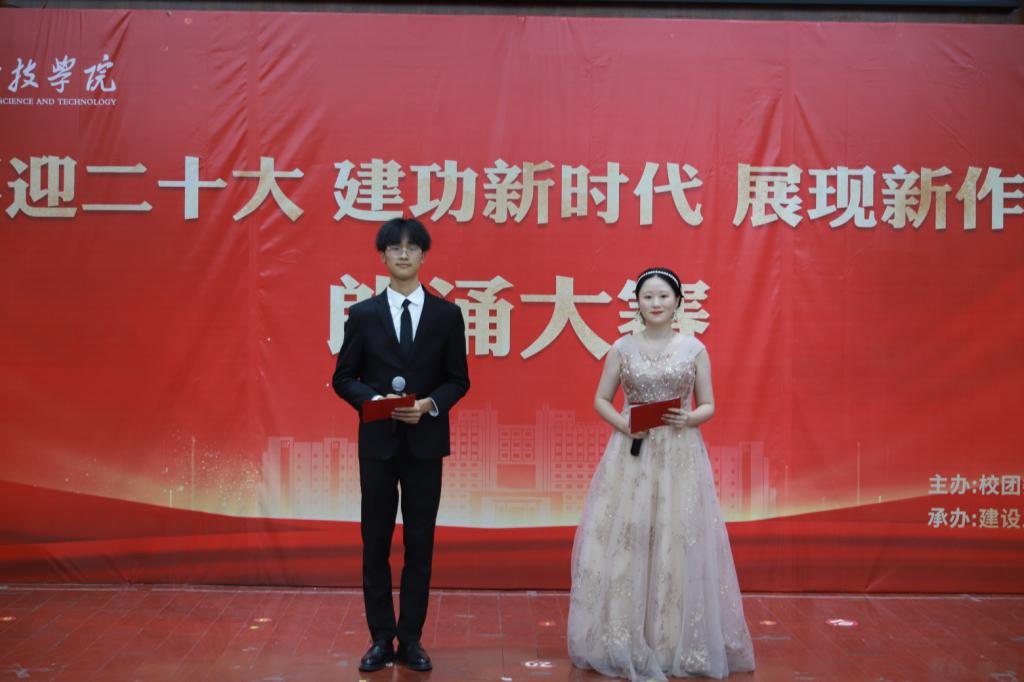 本网讯:为进一步激励学生“感恩党、听党话、跟党走”的信心和决心,用青年正气的声音去致敬祖国。10月19日晚,bat365于逸豪学术报告厅举办“喜迎二十大,建功新时代,展现新作为”朗诵大赛,本次比赛由校团委主办,建设工程系团总支承办。bat365中文官方网站团委书记李敏、建设工程系副主任涂黎明,郁婷老师及各系团总支书记作为嘉宾出席,院学工办王莹蓥老师、院思政部陈雅琪老师和院思政部薛芳担任本次比赛评委。