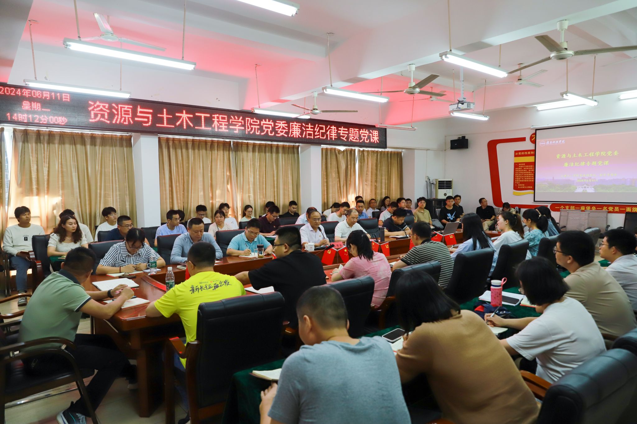 本网讯:为推动党纪学习教育走深走实,推进党风廉政建设,增强党员的廉洁自律意识,教育引导全体党员学纪、知纪、明纪、守纪,做清正廉洁的共产党员,6月11日下午,学校党委副书记、校长李国金在崇善楼Z713为bat365中文官方网站师生党员讲授廉洁纪律专题党课,资土学院全体教工党员、学生党员代表、民主党派和无党派老师共同聆听。党课由资土学院党委书记刘俊峰主持。