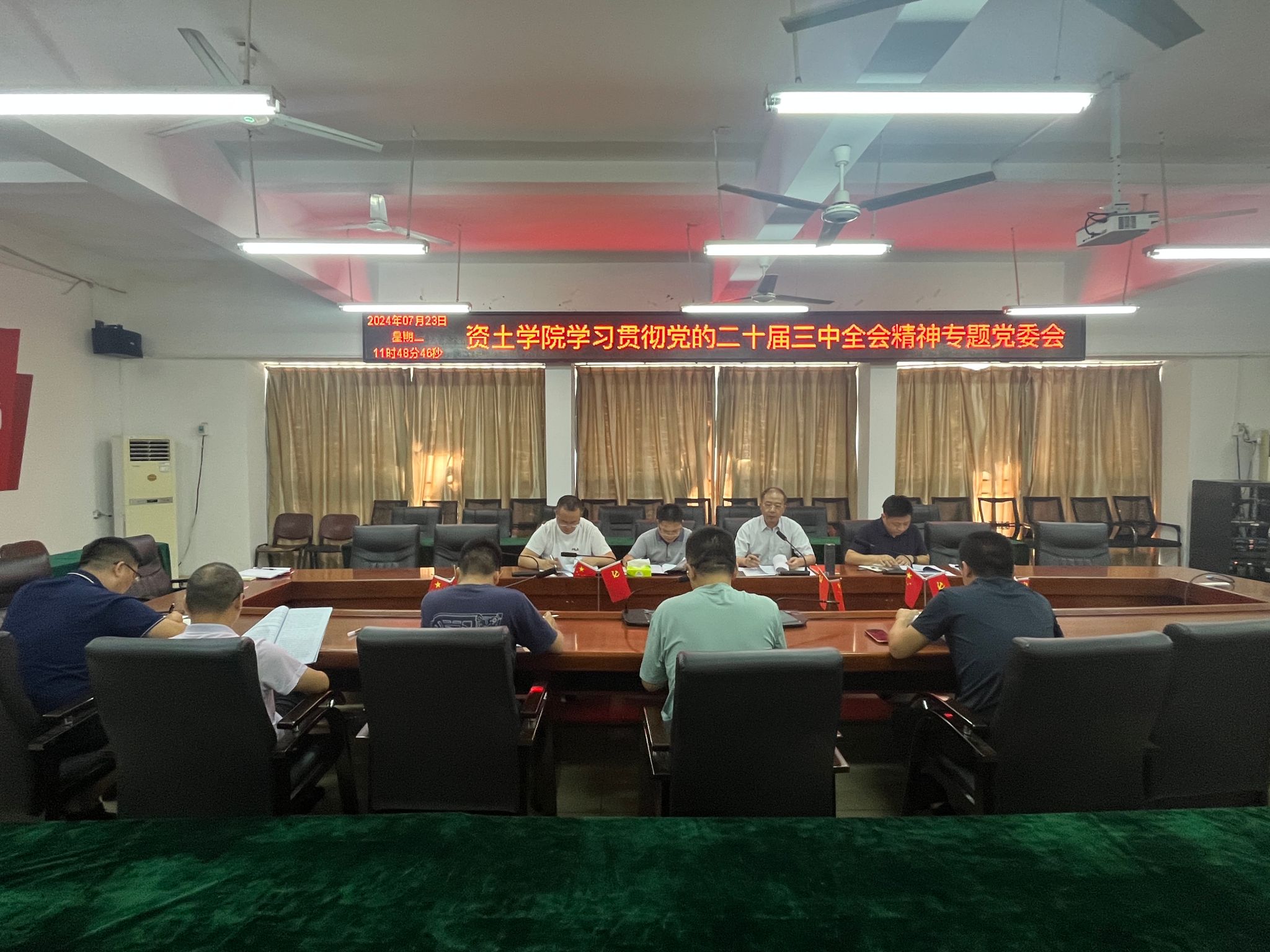 本网讯:为深入学习贯彻党的二十届三中全会精神,7月23日上午,资土学院党委在Z713会议室召开党委会,传达学习宣传贯彻党的二十届三中全会精神。资土学院领导班子、各党支部书记、各教研室主任参加会议,会议由资土学院党委书记刘俊峰主持。