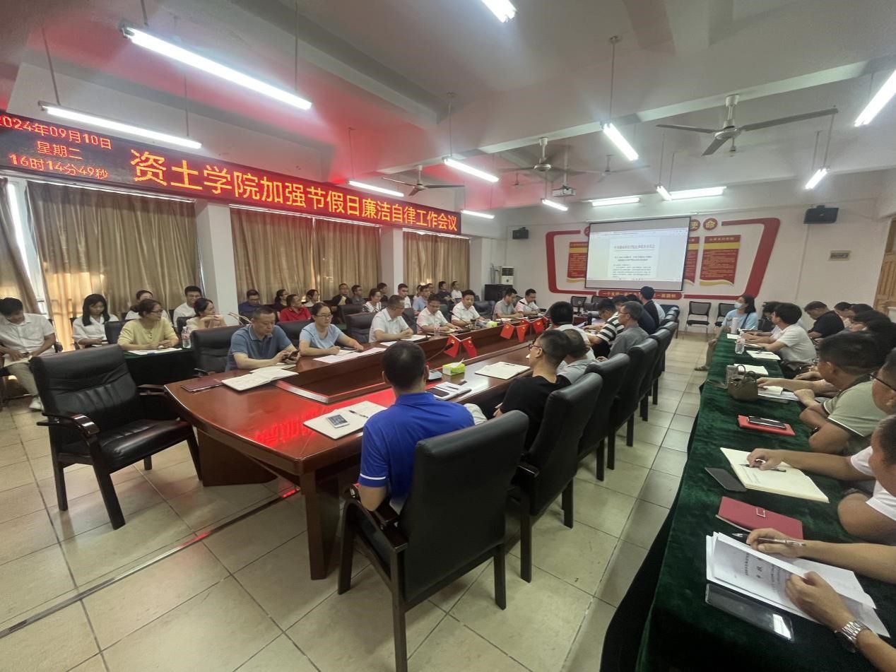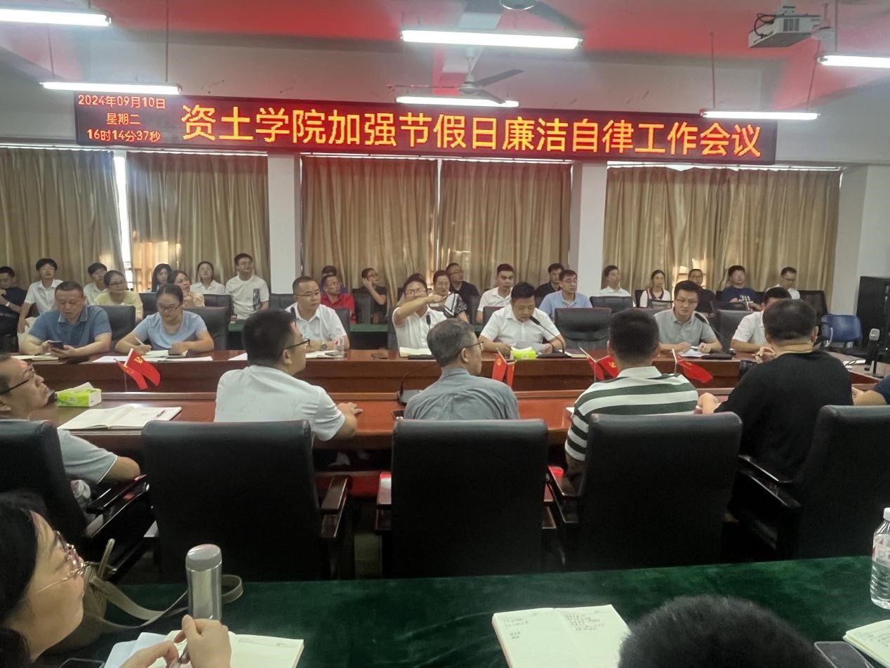 本网讯中秋节前夕为深入学习贯彻习近平总书记关于党纪学习教育的重要讲话和重要指示批示精神,进一步提升廉政纪律意识,增强党员干部廉洁自律意识,切实筑牢拒腐防变的思想防线,9月10日16点,bat365中文官方网站在崇善楼713会议室召开全体教职工大会专题部署加强节假日廉洁自律工作会议。