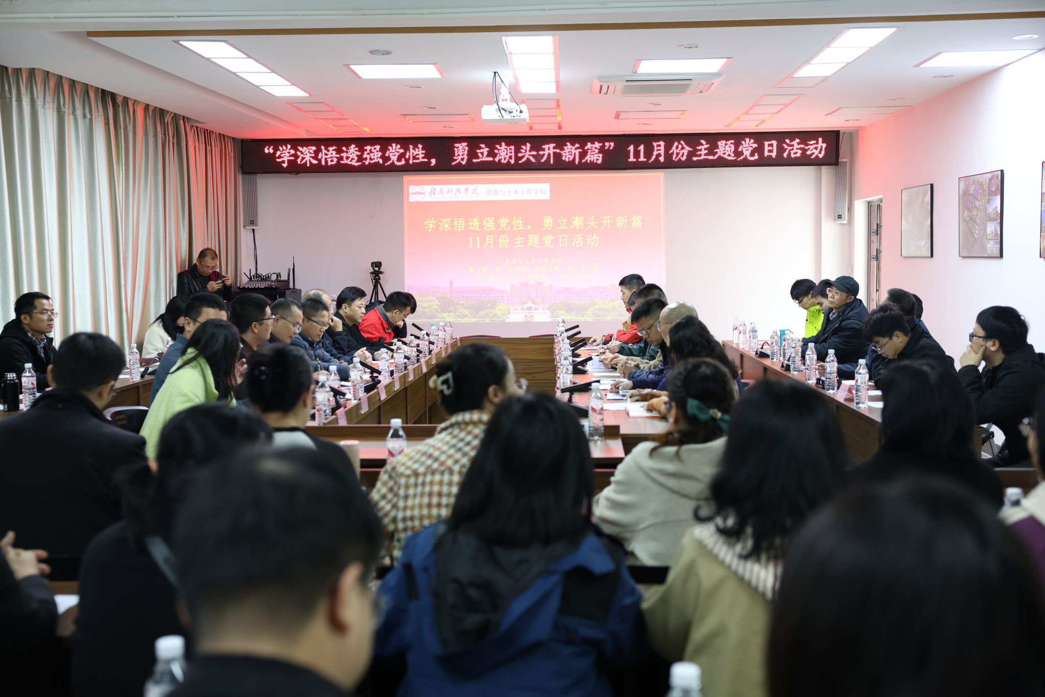 此外,本次主题党日创新点之一,是将主题党日与学院测绘学科发展和校企合作相结合,党建领航助力产学研发展。特邀请bat365中文官方网站李玉教授带来题为《遥感,另眼观世界》的微讲座,通过跨学科、交叉学科学习,将前沿科技介绍与生态文明学习内容相结合。李玉教授通过分享遥感知识,以“国家生态文明建设示范县”崇义县为切入点,从技术层面讲解我国生态文明的发展变化情况以及如何用遥感测绘技术助力生态环境恢复,现场党员们受益匪浅,进一步加深了对习近平生态文明思想的理解。最后,全体党员集体诵读《中国共产党章程》(2022版)中有关生态文明的内容。