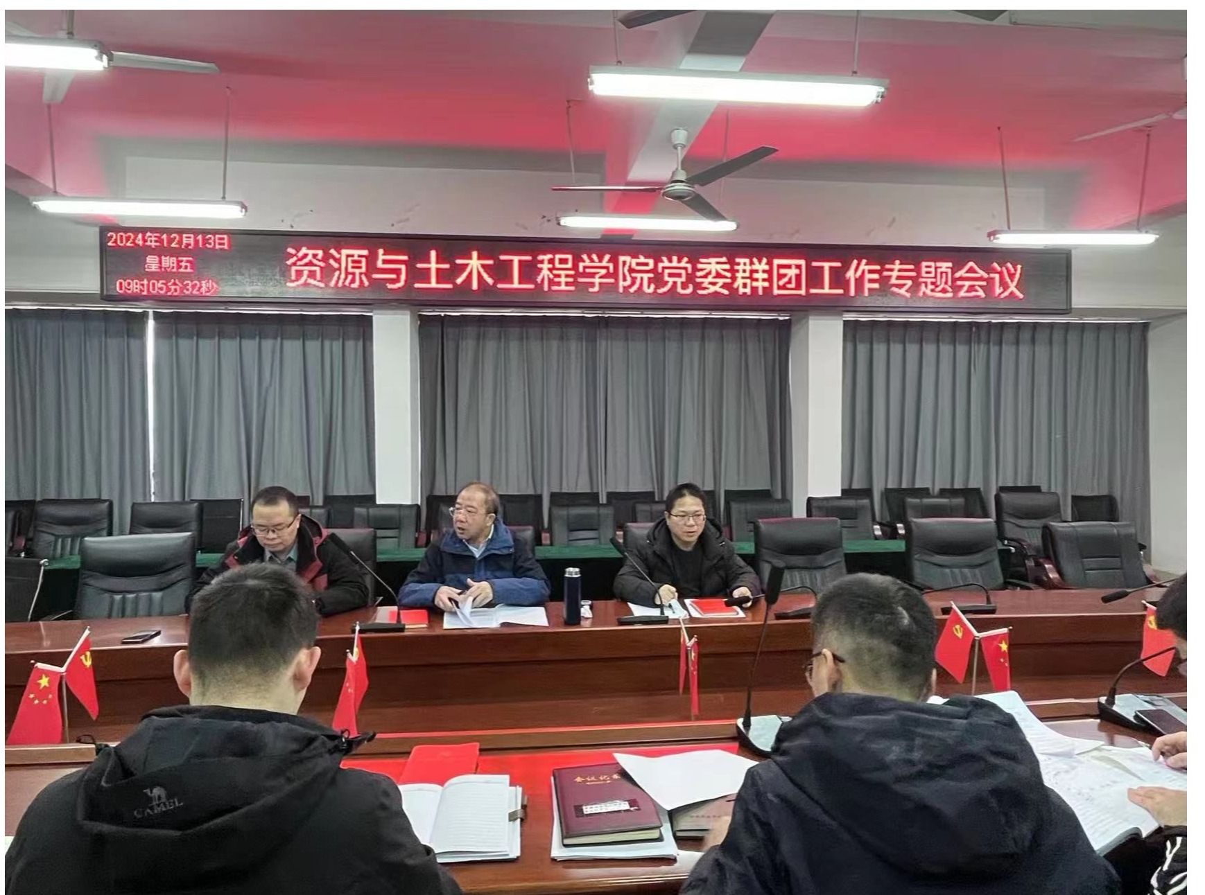 会议强调,要深刻认识新形势下加强和改进党的群团工作的重要性和紧迫性,坚定不移走中国特色社会主义群团发展道路,以更大力度抓好党的群团工作,加大对群团工作的支持保障力度,把群团组织建设得更加充满活力、更加坚强有力;要坚持党对群团工作的领导,切实保持和增强党的群团工作的政治性、先进性和群众性,坚持发挥桥梁和纽带作用,坚持围绕中心、服务大局,坚持服务群众的工作生命线,引领团结凝聚学校师生自觉培育和践行社会主义核心价值观,推动学院各项事业高质量发展。