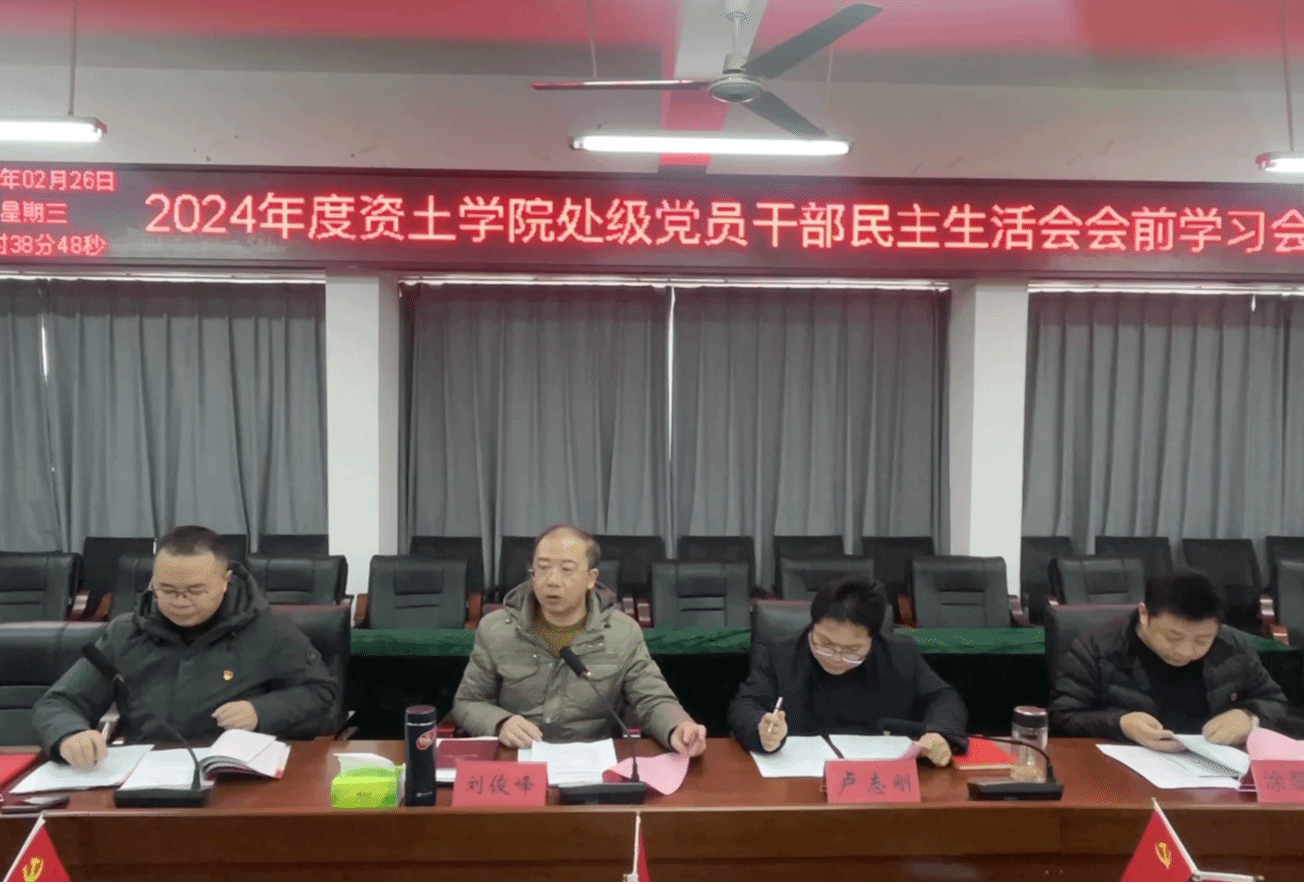 本网讯:为进一步落实学校党委《关于开好2024年度处级党员干部民主生活会通知》要求,bat365中文官方网站开展2024年度党委领导班子民主生活会会前学习。本次会前学习分为个人自学与集中学习两个阶段,2月23-25日,学院领导班子开展了为期三天的自学;2月26日上午,在崇善楼 Z713 会议室进行集中学习。本次集中学习会议由学院党委书记刘俊峰主持,学院党委委员、副院长卢志刚,学院党委委员代靖怡、涂黎明、科级干部及各党支部书记参会。