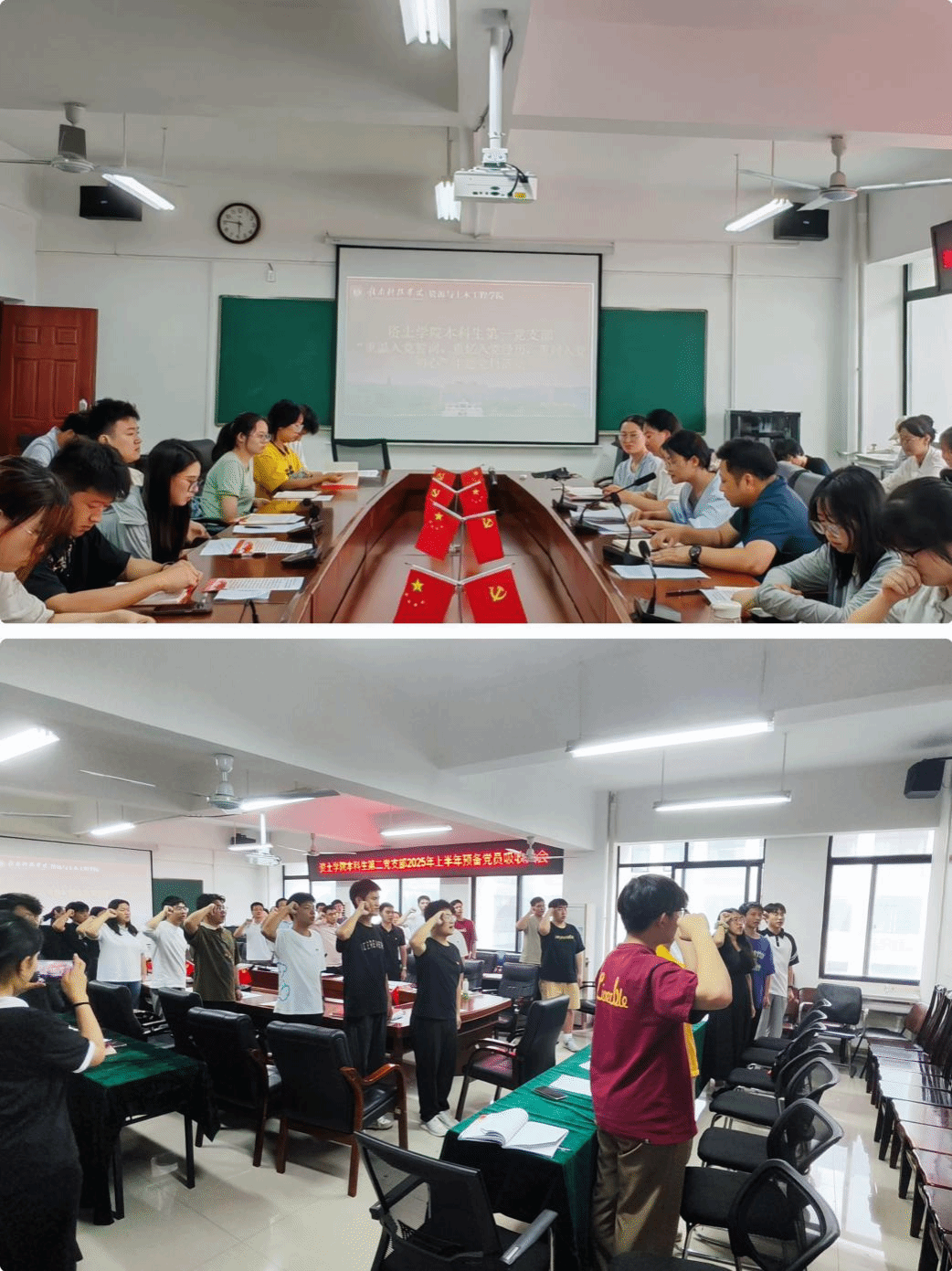 重温入党誓词,坚定初心使命。学院各党支部积极响应学校号召,组织师生党员开展了“重温入党誓词,重忆入党经历,重问入党初心” 主题党日活动。活动中,党员们庄严肃立,面对鲜红的党旗,高举右手,一句句铿锵有力的誓言,在会议室内内久久回荡,激发了党员们的党性修养、宗旨意识和政治担当。结合深入贯彻中央八项规定精神学习教育,党员们还专题学习了《中国共产党章程》部分内容,深入交流入党经历和初心,进一步增强了对党的忠诚和为人民服务的决心。