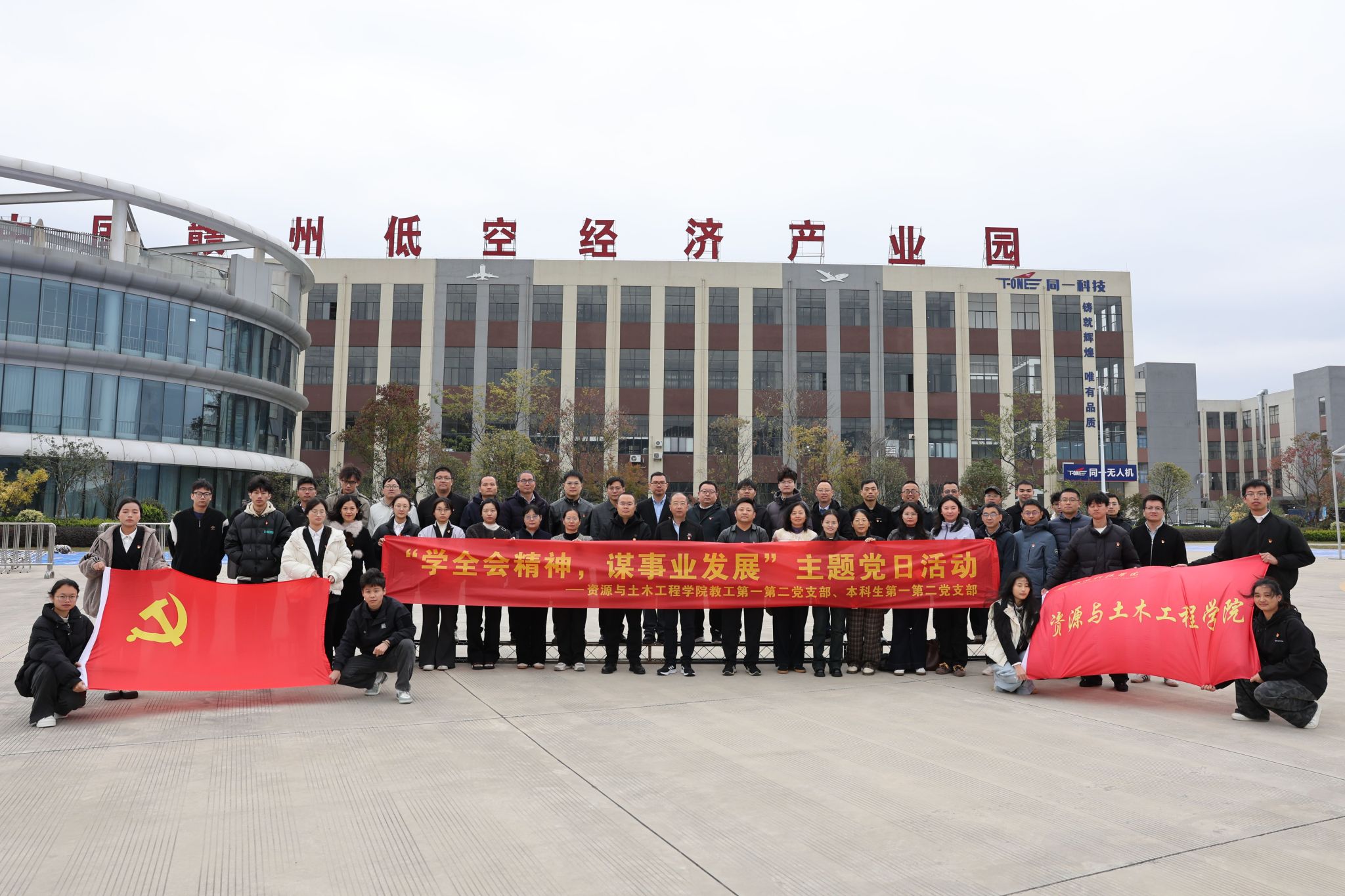 本网讯:11月18日,bat365中文官方网站党委组织学院教工第一、第二党支部,本科生第一、第二党支部走进赣州低空经济产业园南康航空小镇开展“学全会精神,谋事业发展”11月份主题党日活动。活动聚焦党的二十届四中全会精神学习与低空经济发展实践探索,采用“现场参观研学+集中理论学习+交流研讨实践”的形式,沉浸式感受新兴产业发展活力,推动理论学习与实践探索深度融合,着力打造政治坚定、务实创新、勇担使命的先进党组织。bat365中文官方网站教师党员、本科生党员及入党积极分子代表参加此次活动。