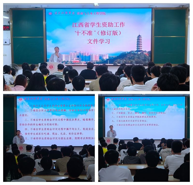 本次活动分为政策解读与优秀学生经验分享两个阶段。活动伊始,张超美老师为在场师生详细解读了《江西省学生资助工作“十不准”文件(修订版)》,强调了资助工作的纪律性与规范性,号召同学们深刻领会文件精神,共同维护教育公平与社会正义。