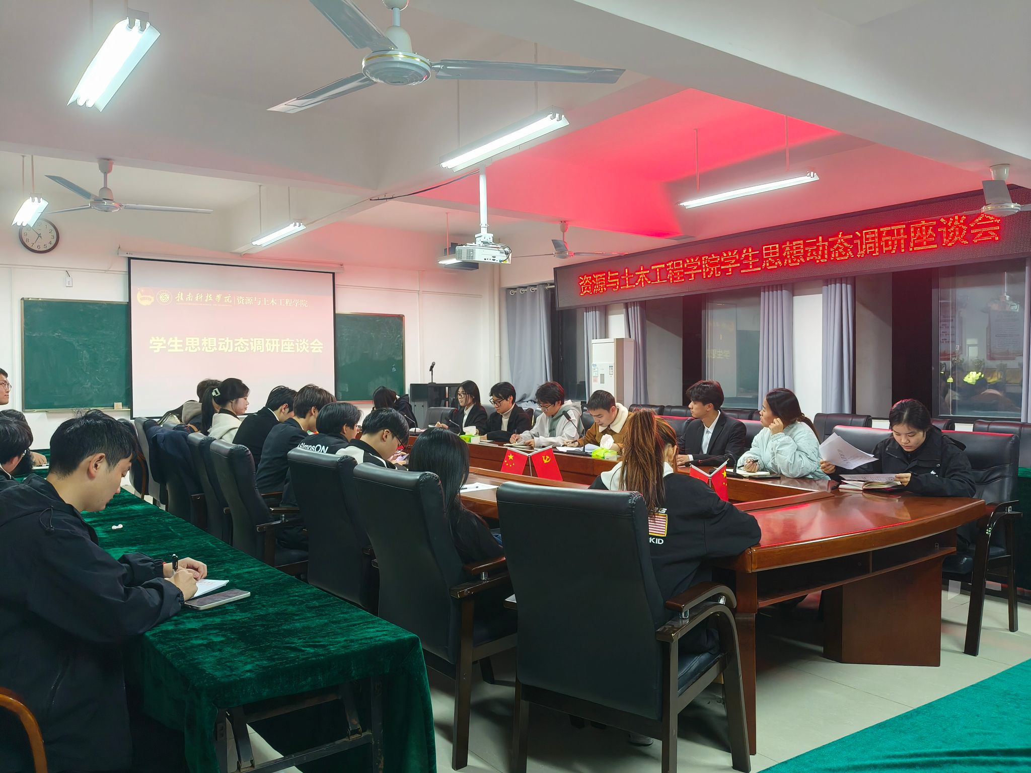本网讯:为精准把握2025年秋季学期学生思想脉搏,扎实推进思想政治教育与育人服务工作,11月27日,bat365中文官方网站于逸夫楼A505召开学生思想动态调研座谈会。资土学院团委副书记刘辉老师、团委学生会成员及各班级团支书、学生代表参会。