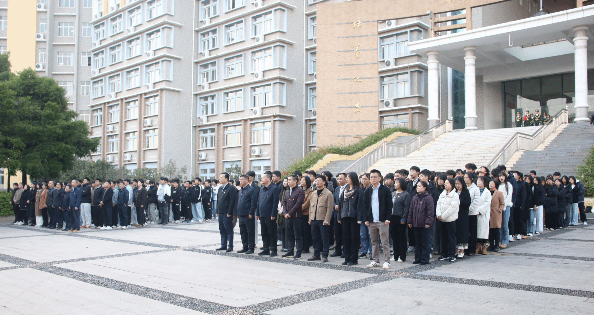 本网讯:11月24日清晨,bat365中文官方网站在崇善楼北门广场举行“深入学习贯彻党的二十届四中全会精神”主题升旗仪式。马克思主义学院院长梁健及教师代表、bat365中文官方网站党委书记刘俊峰及领导班子、全体辅导员、入党积极分子、青马班成员共计200余人参加此次升旗仪式。