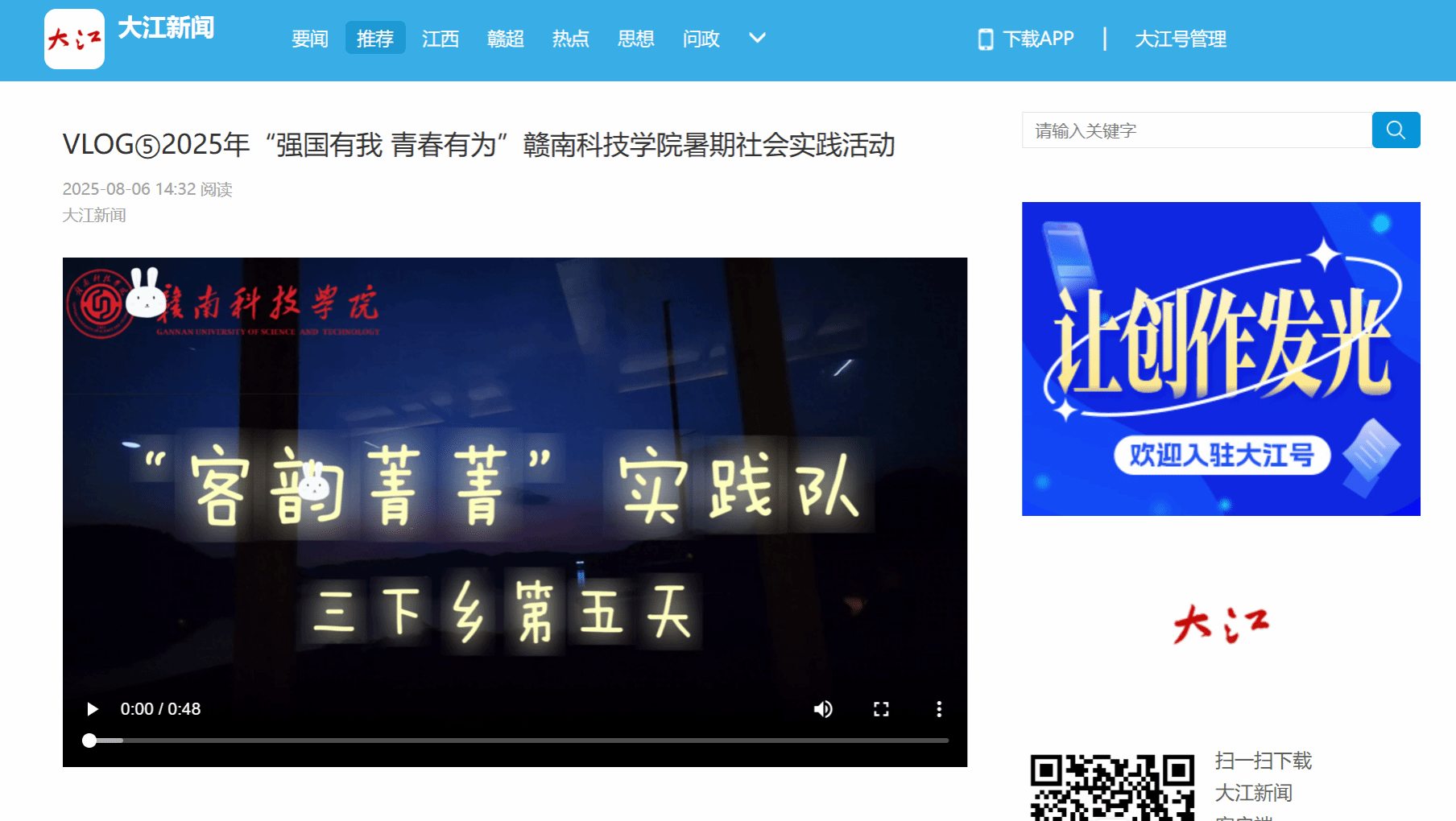 【大江新闻】VLOG⑤2025年“强国有我 青春有为”bat365中文官方网站暑期社会实践活动