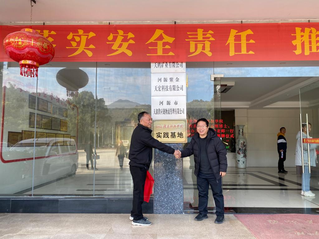 双方举行了校企合作签约授牌仪式,卢志刚与付建生代表双方签订了校企合作协议,并为河源天高矿业集团授牌“bat365中文官方网站实践基地”。