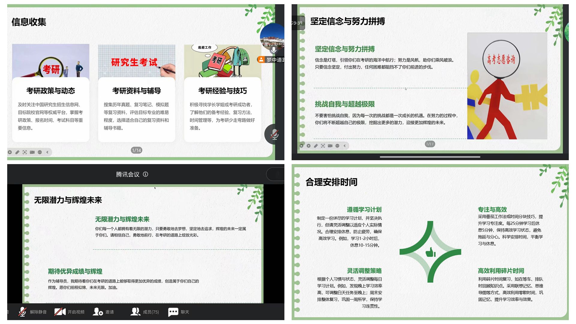 此次线上考研动员会的成功举办,为 2026 届毕业生提供了宝贵的备考经验和指导,极大地激发了同学们的备考热情。学院表示,后续将持续关注毕业生的考试动态,组织更多针对性的辅导活动和讲座,为毕业生顺利通过考试、实现高质量就业提供全方位的支持和帮助。