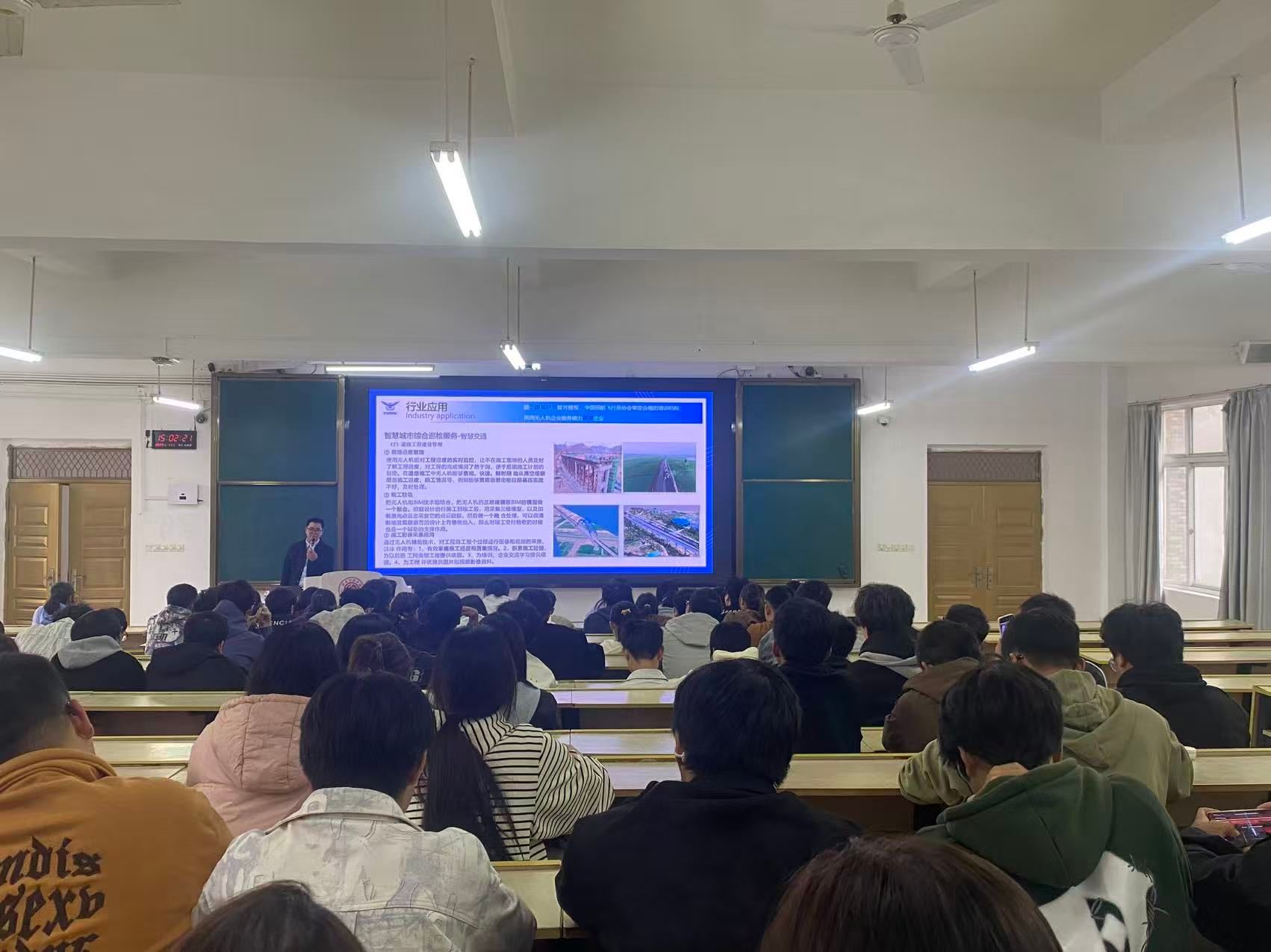 宣讲过程中,廖小建老师以“低空经济下无人机的应用与职业发展”为核心,从行业趋势、技术应用、证书价值三个维度展开讲解。在无人机应用场景部分,他结合实际案例,详细介绍了无人机在资源勘探、土木工程测绘、应急救援、物流运输等领域的具体应用——例如在矿产资源调查中,无人机可通过航拍与数据建模快速获取地形信息,大幅提升勘探效率;在建筑工程施工中,无人机能实时监测施工进度与安全隐患,为工程管理提供精准数据支持。这些贴近专业、贴合行业的内容,让学生们对无人机技术与低空经济的融合发展有了更直观的认知。