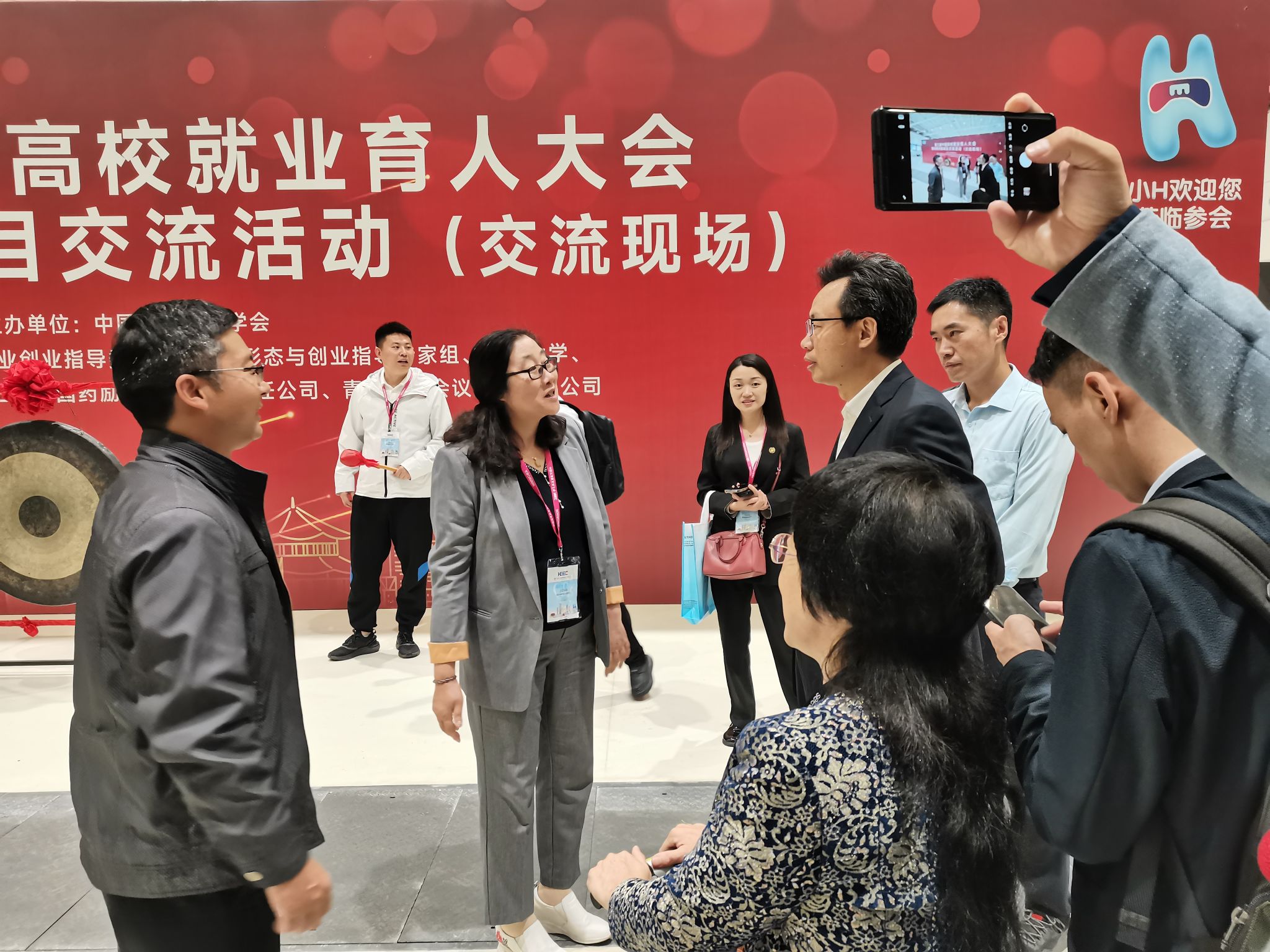 交流会现场,教育部高校学生司副司长吴爱华与魏炳辉一行进行了简短的沟通交流,为bat365如何深化高校就业育人实践、促进大学生高质量充分就业提供新视角。
