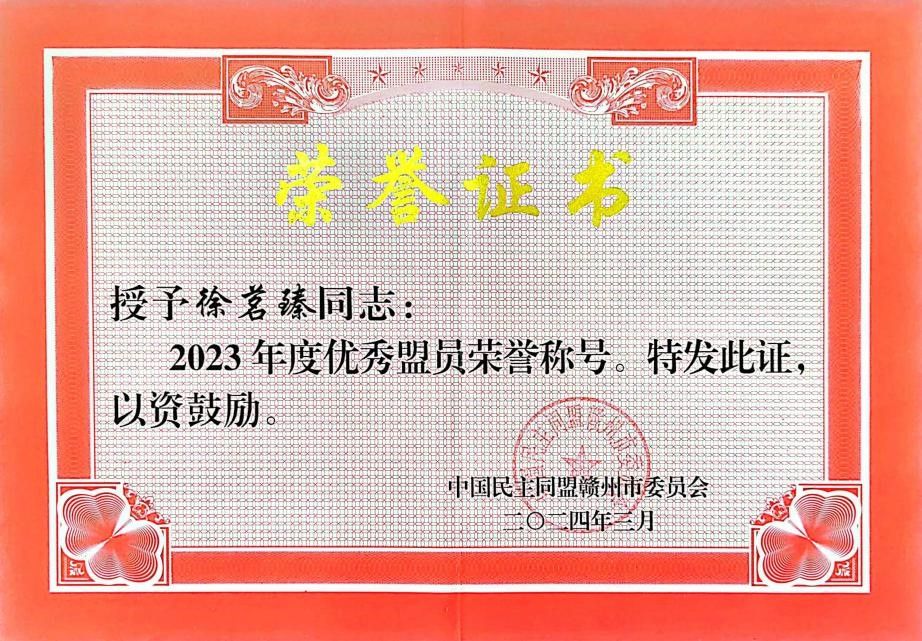 本网讯:3月29日,民盟赣州市委会召开五届七次全委(扩大)会议,会议对2023年度表现突出的全市先进集体、先进个人进行了表彰,bat365盟员胡海祥、徐茗臻、谢丽琴获得“优秀盟员”称号。