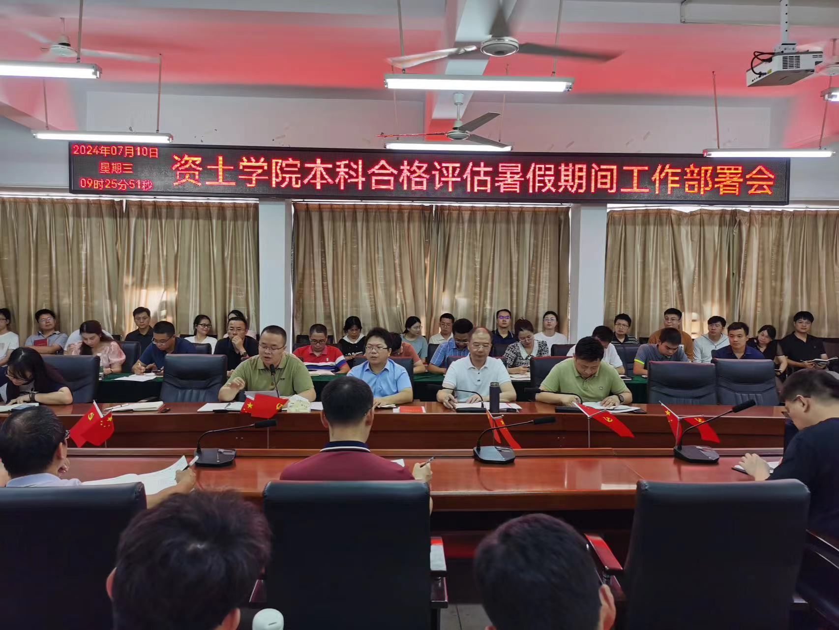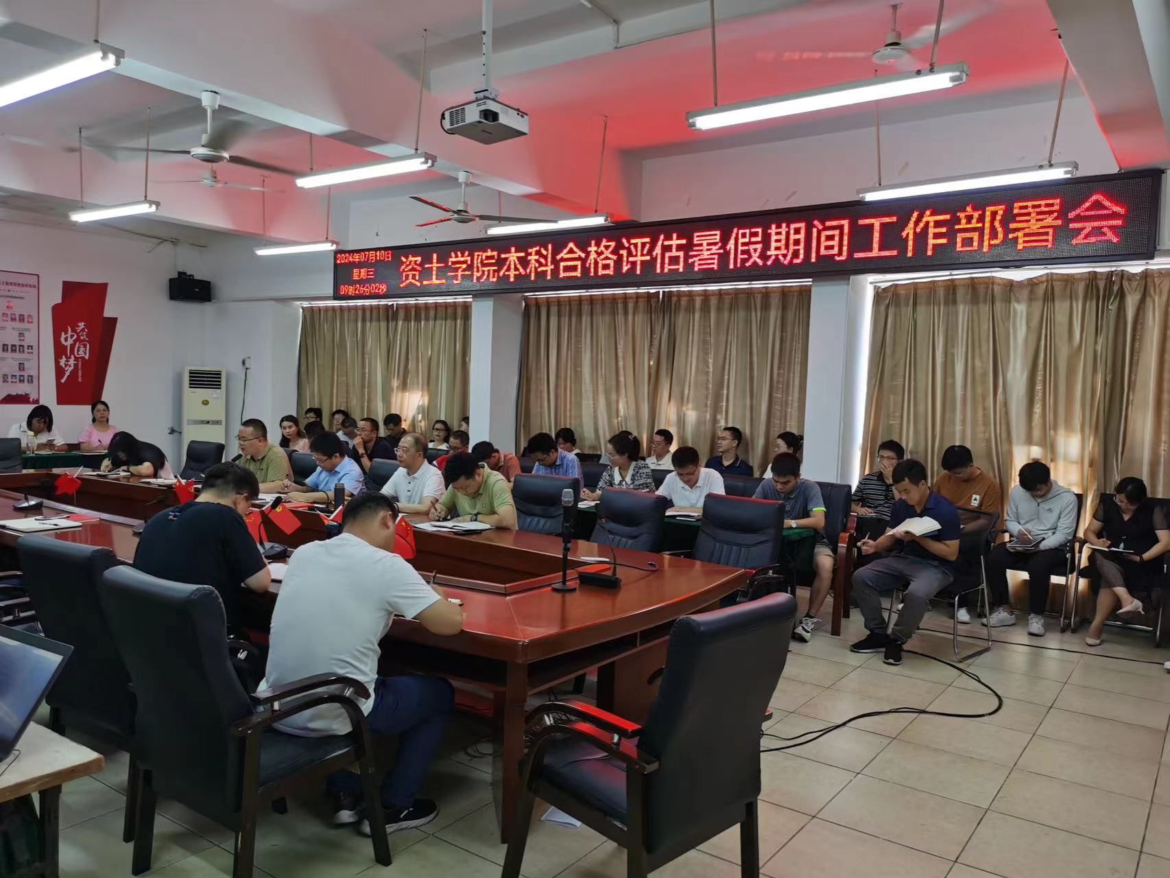 本网讯:为确保本科合格评估工作的顺利进行,bat365中文官方网站于7月10日上午在崇善楼Z713召开本科合格评估暑假期间工作部署会,共同商讨并部署暑期本科合格评估关键工作任务。资土学院党委书记刘俊峰、行政负责人卢志刚、教学负责人代靖怡、学工负责人涂黎明以及资土学院全体教职工参与本次会议。会议由刘俊峰主持。